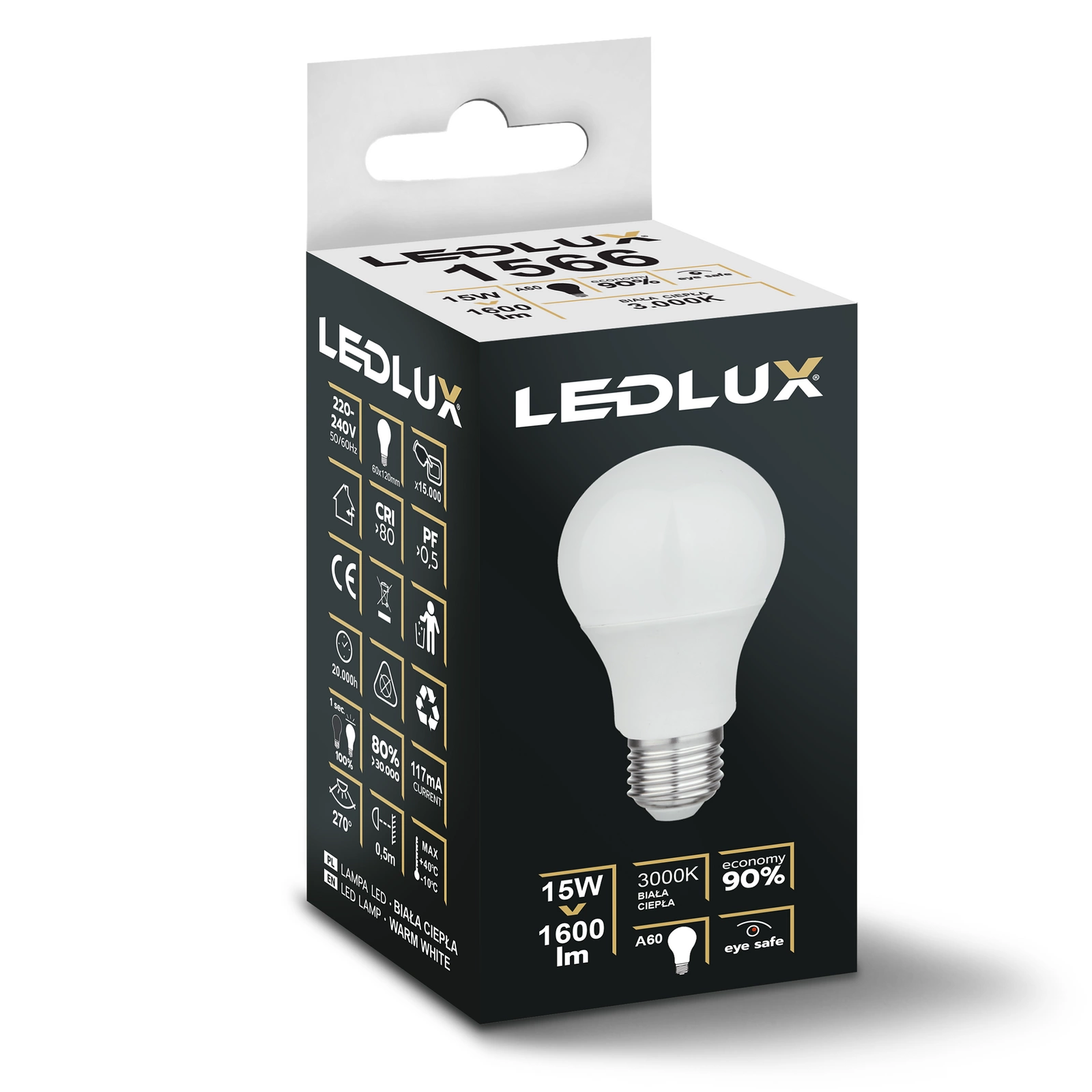 Opinie o 6x Żarówka LED E27 A60 15W = 120W 1600lm 3000K biała ciepła LEDLUX