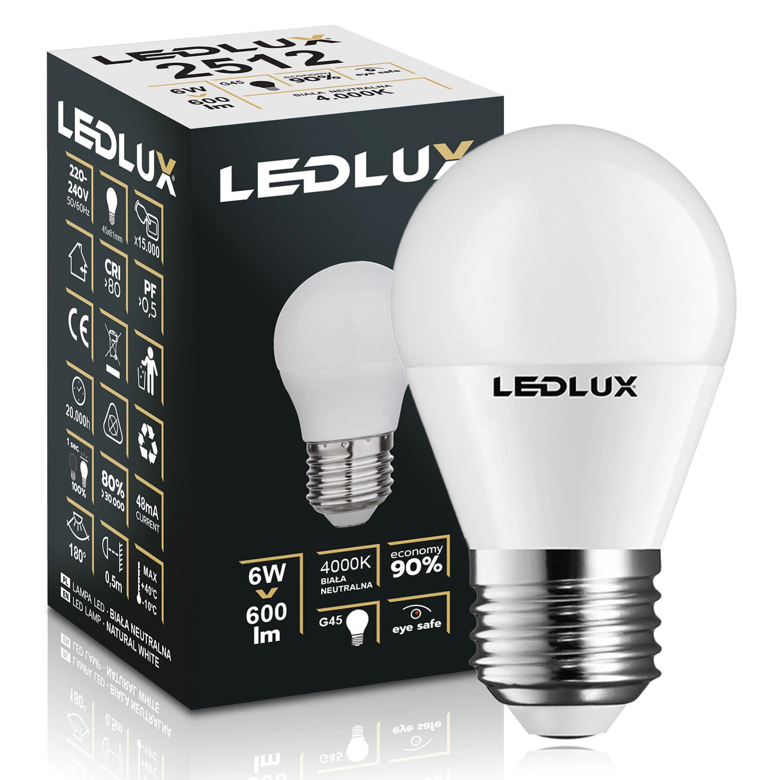 Żarówka LED E27 G45 6W = 60W 600lm 4000K biała neutralna LEDLUX
