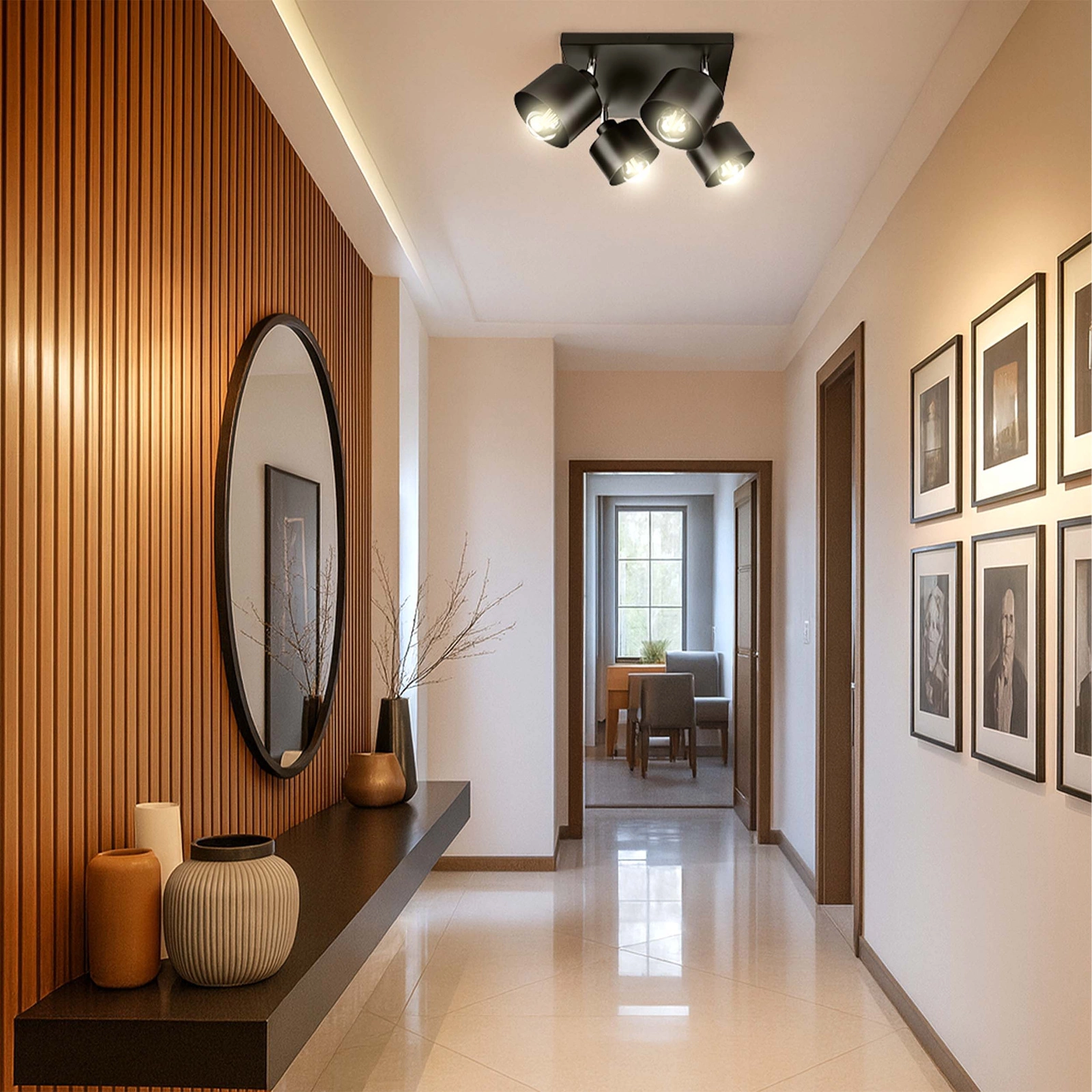 - ✴️ Czarna, minimalistyczna lampa sufitowa 4x E27, która łączy funkcjonalność z eleganckim stylem loft i glamour. Cztery regulowane punkty światła pozwalają skierować strumień dokładnie tam, gdzie go potrzebujesz – nad stół, blat w kuchni lub do strefy wypoczynkowej.
