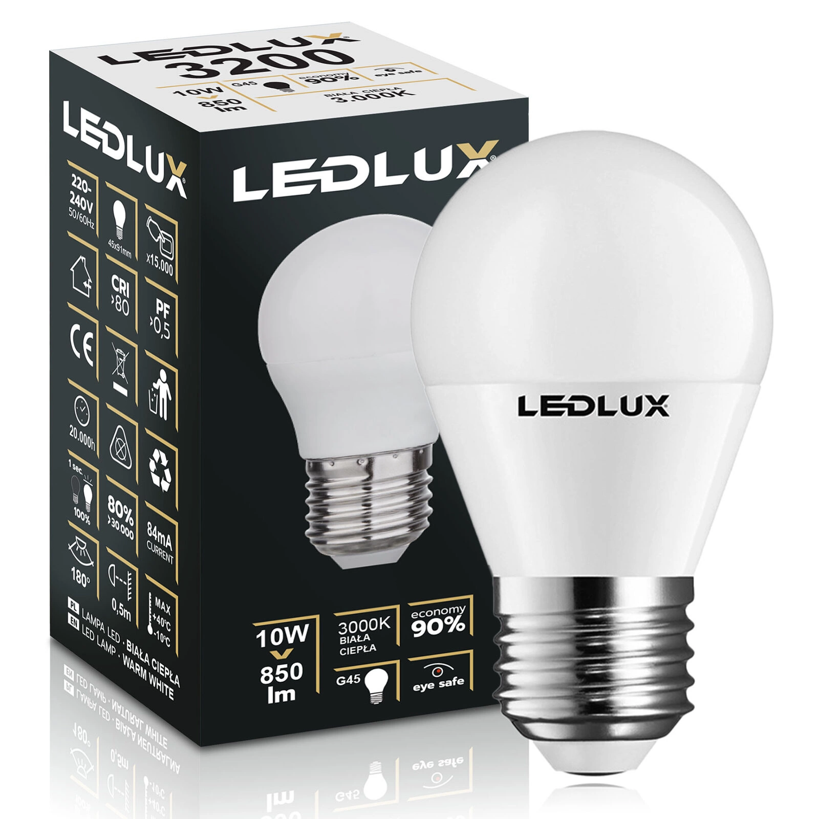 Żarówka LED E27 G45 10W = 90W 850lm 3000K biała ciepła LEDLUX