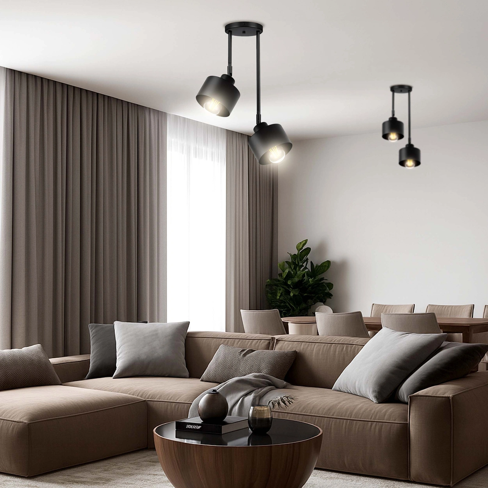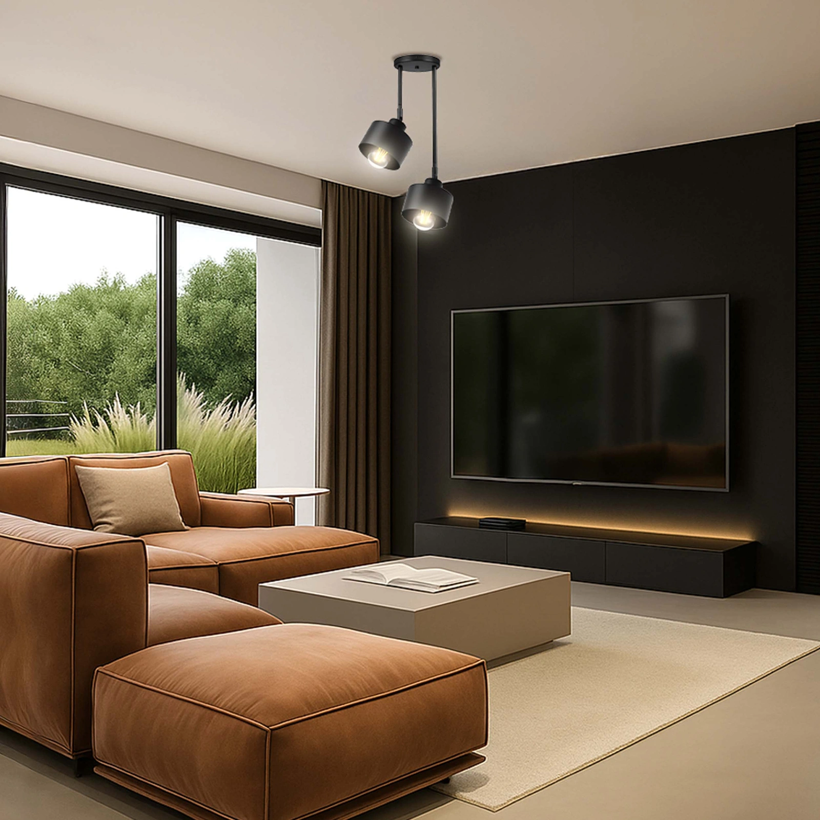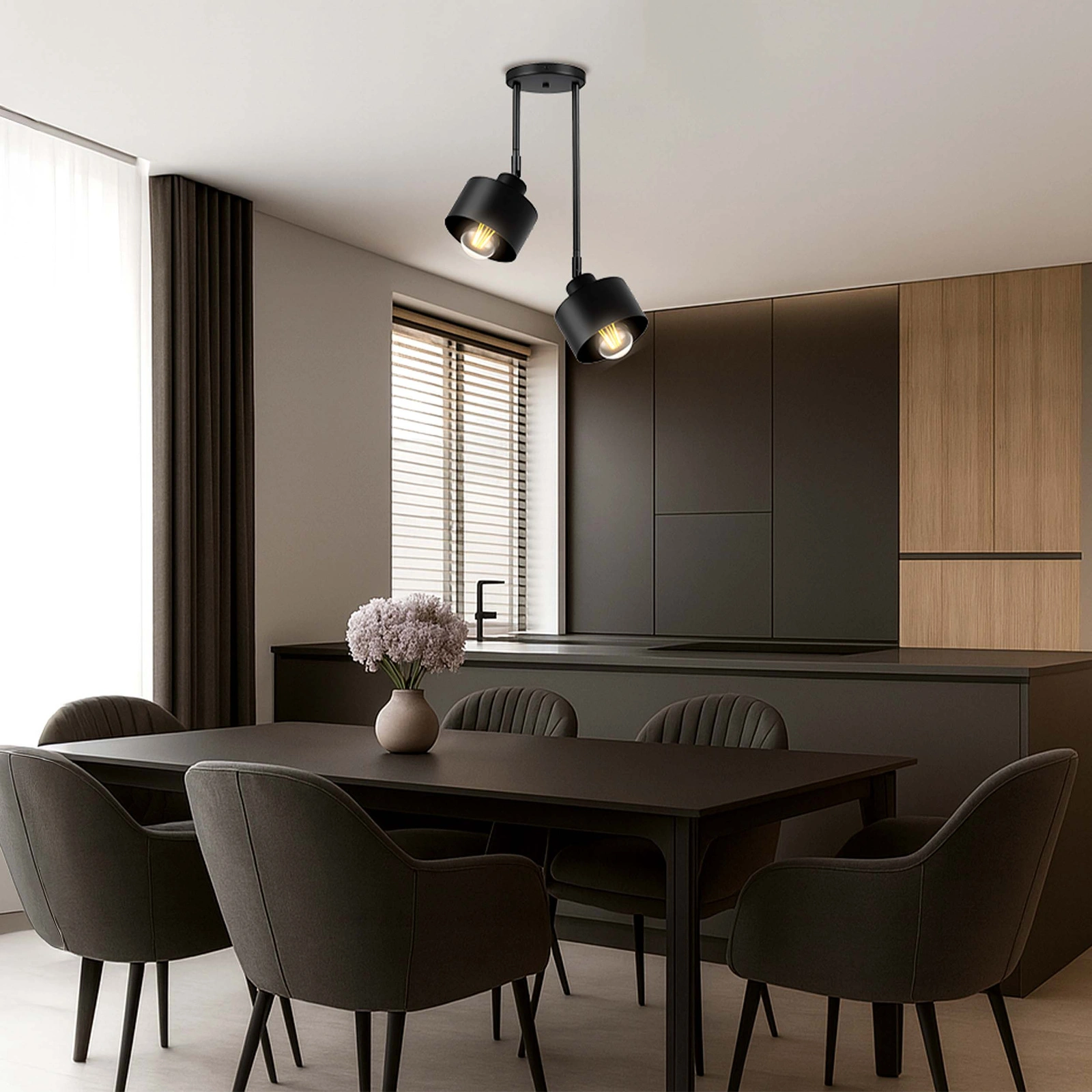 - Elegancka lampa sufitowa 2-płomienna w kolorze czarnym matowym to doskonałe połączenie designu loftowego, minimalizmu i funkcjonalności.