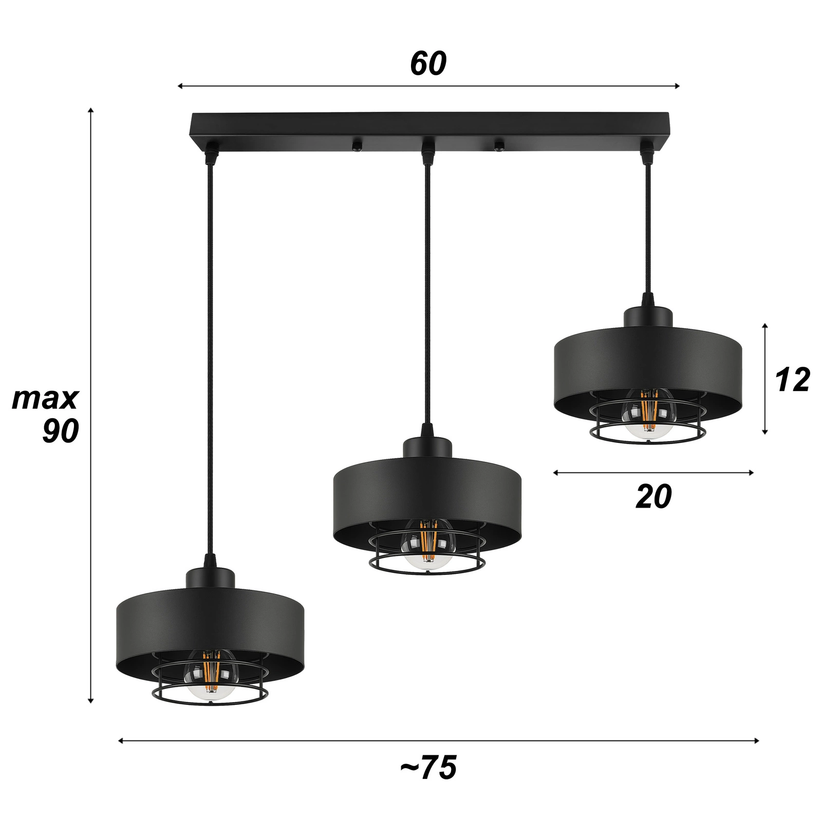 Lampa Wisząca LX- 1186 Czarna 3x E27 LEDLUX