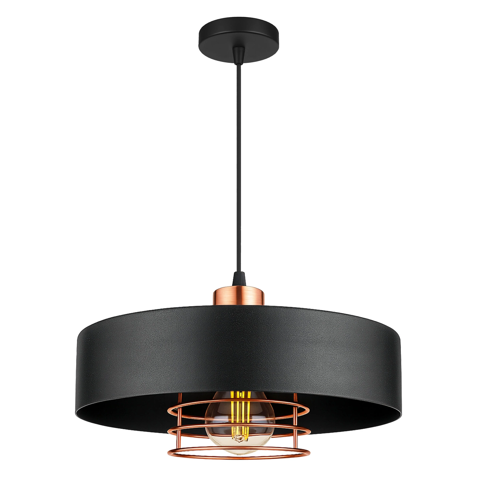 - Lampa wisząca loftowa czarna z miedzią 1xE27 | 30 cm | metalowa oprawa z siatką | regulowana wysokość | styl industrialny i nowoczesny ✴️ Minimalistyczna, ale robi wrażenie. Nowoczesna lampa wisząca w stylu loftowym łączy prostotę formy z surowym industrialnym charakterem. Jej czarna, matowa oprawa i osłona żarówki w formie metalowego pierścienia tworzą efektowny akcent świetlny – idealny do wnętrz, gdzie liczy się klimat i funkcja.