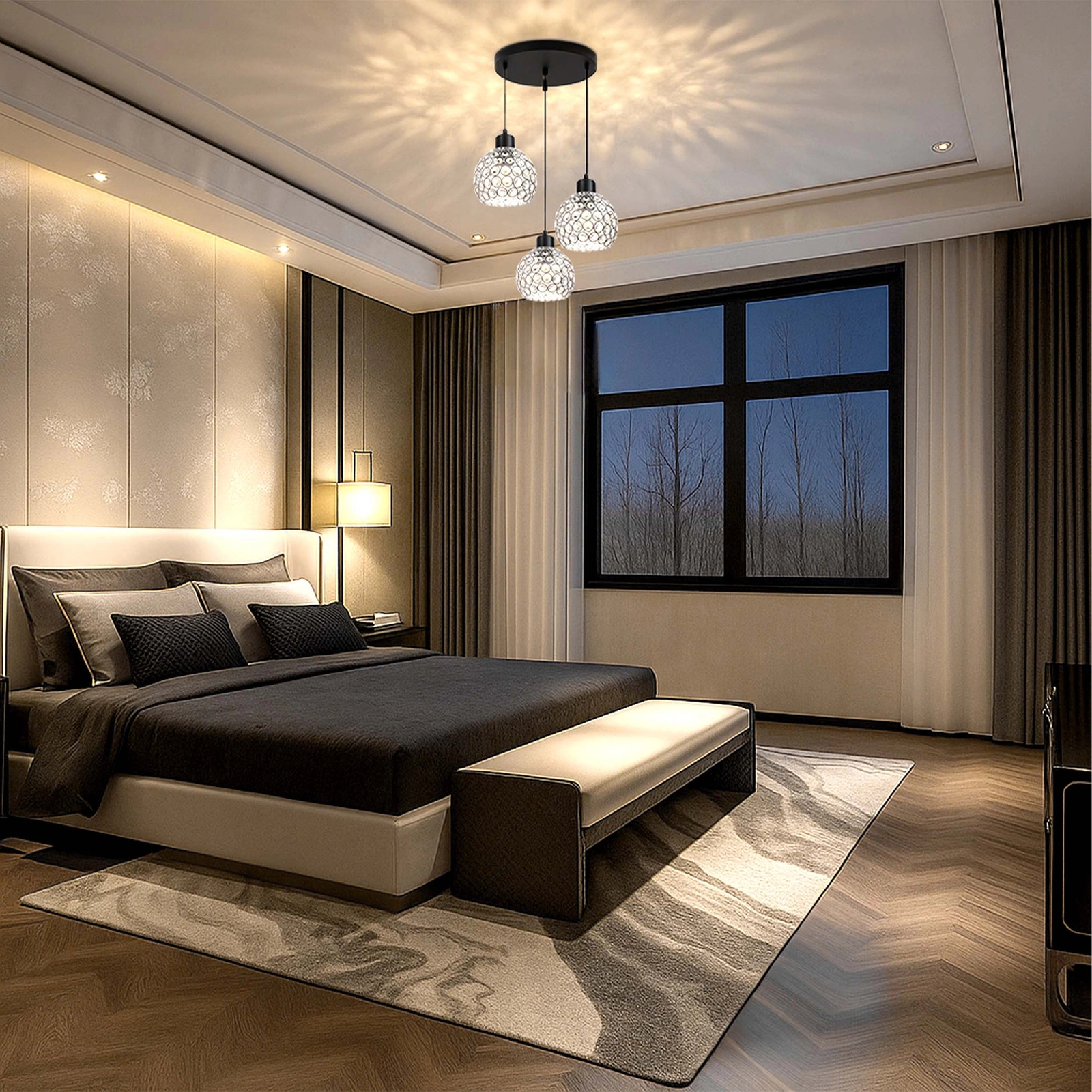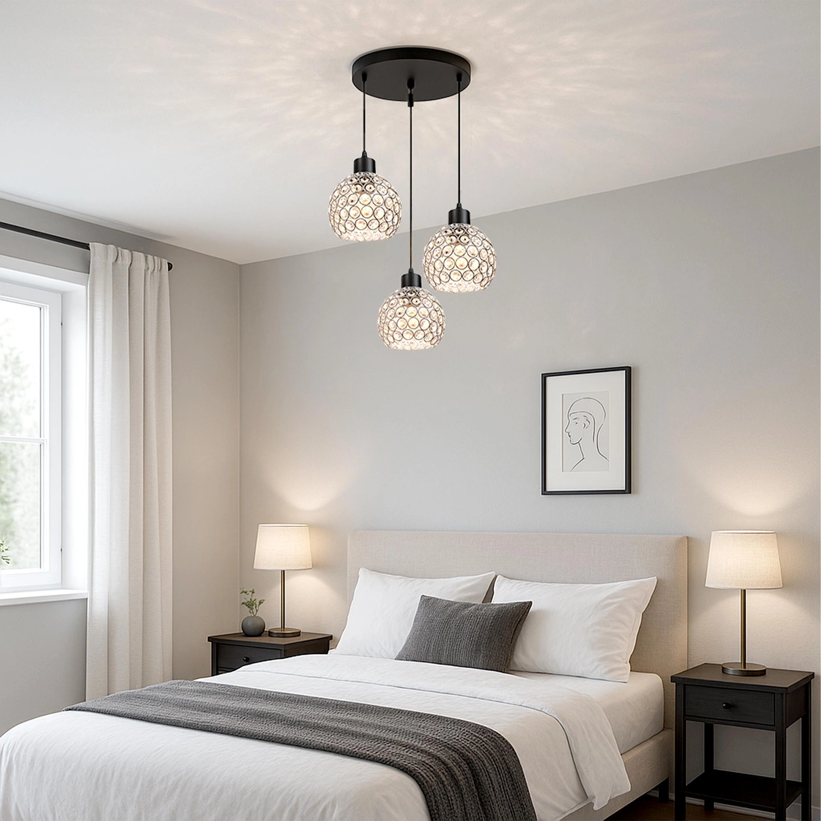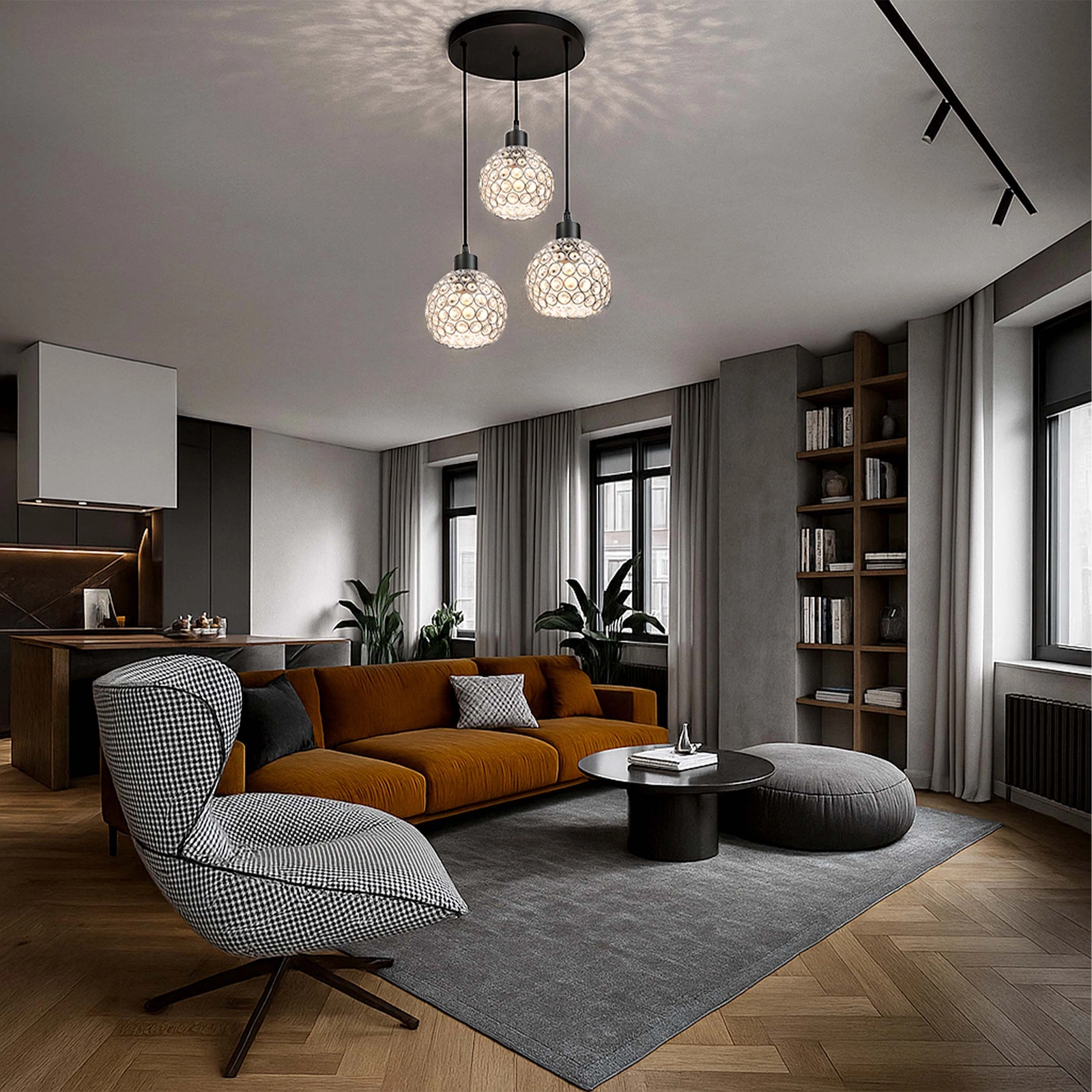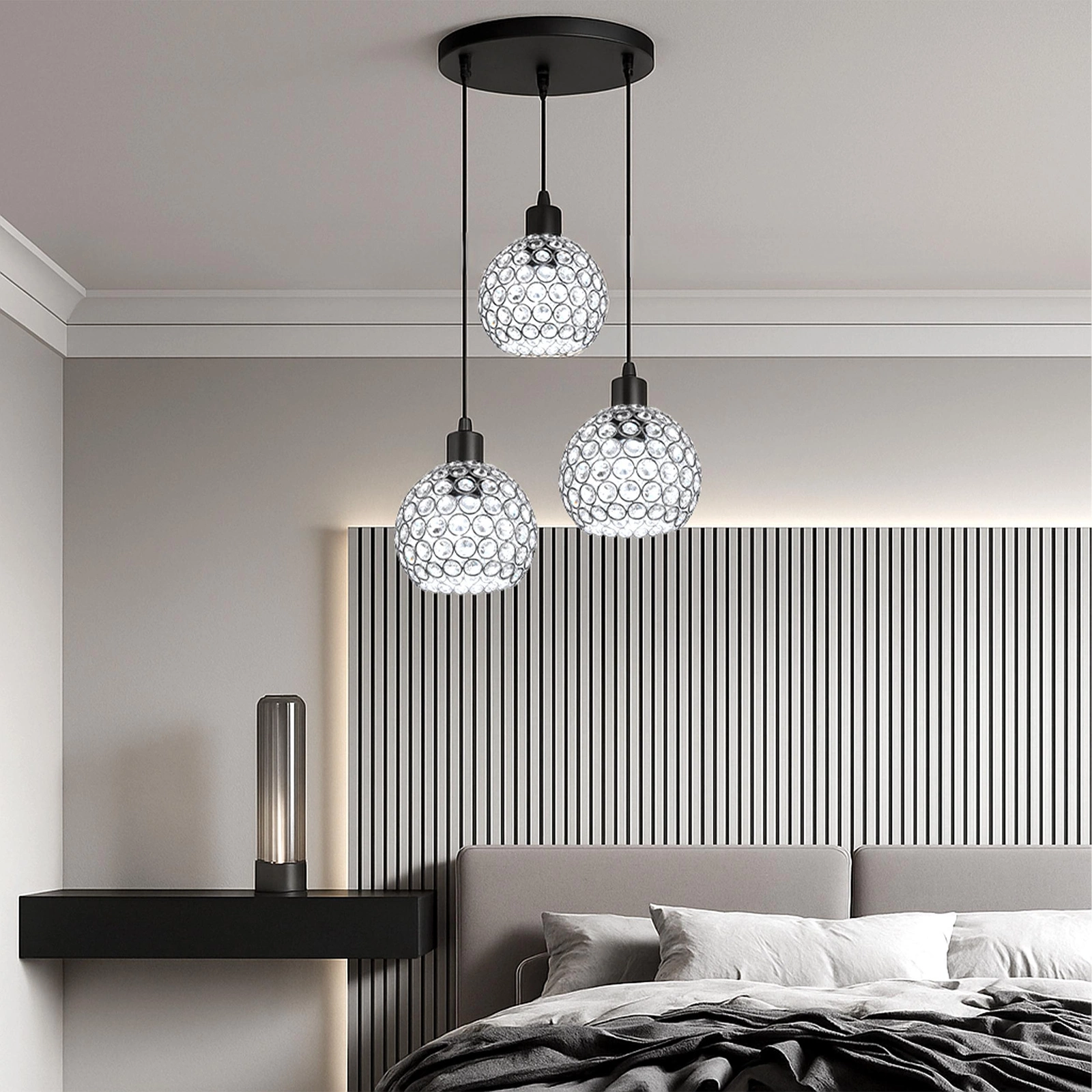 - Lampa wisząca glamour 3xE27 – czarna z kryształowymi kulami | LED | styl nowoczesny i elegancki ✴️ Są takie lampy, które robią wrażenie, zanim jeszcze je zapalisz. Ta kryształowa lampa sufitowa to dokładnie ten efekt – wchodzisz do pomieszczenia i od razu ją zauważasz. Połączenie czarnego metalu z błyszczącymi, szklanymi kryształami tworzy luksusowy, a jednocześnie nowoczesny styl. To idealna propozycja do wnętrz, gdzie światło gra pierwsze skrzypce – zarówno jako element funkcjonalny, jak i dekoracyjny.