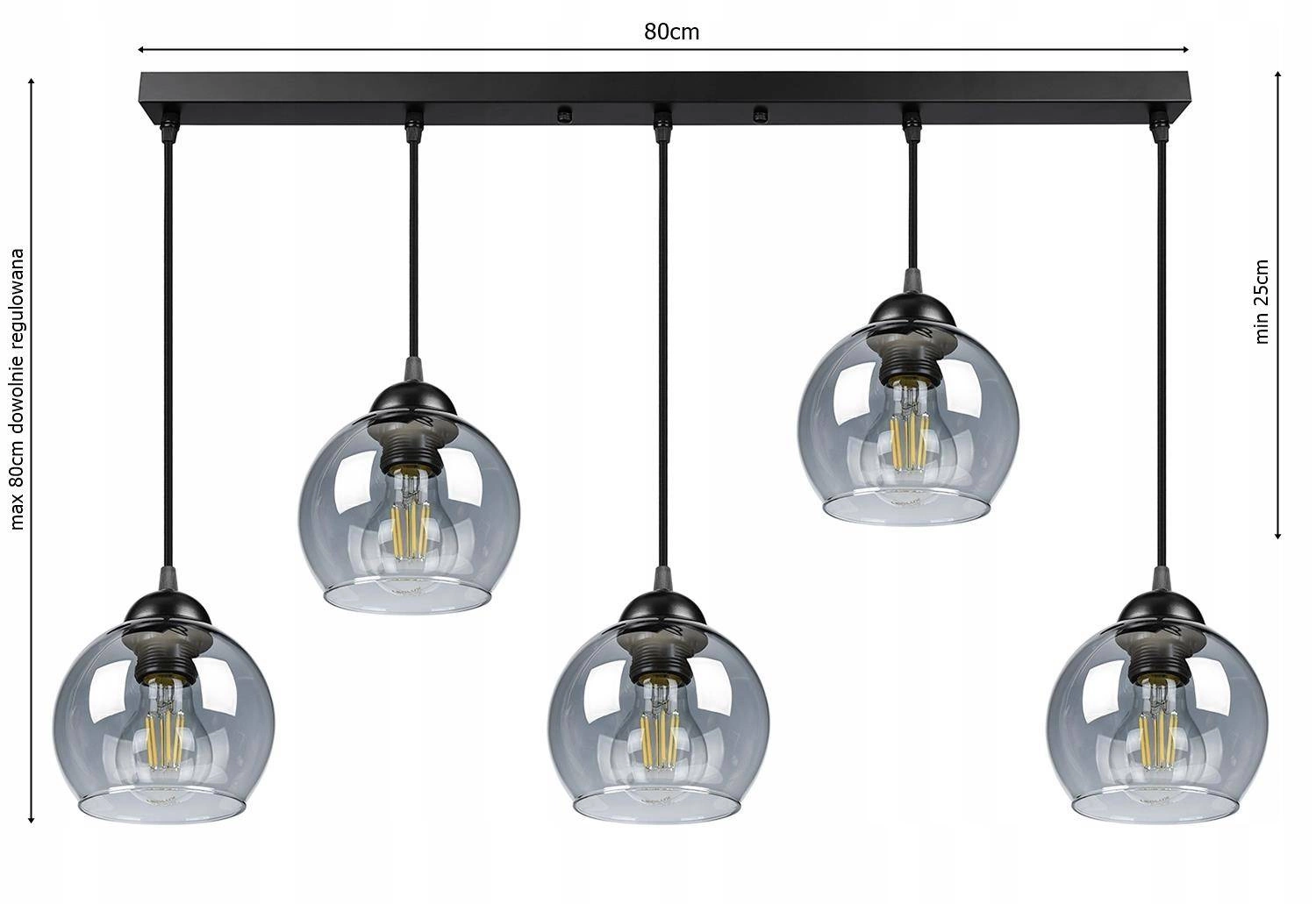 Opinie o Lampa Wisząca LX- 1199 Czarna 5x E27 LEDLUX