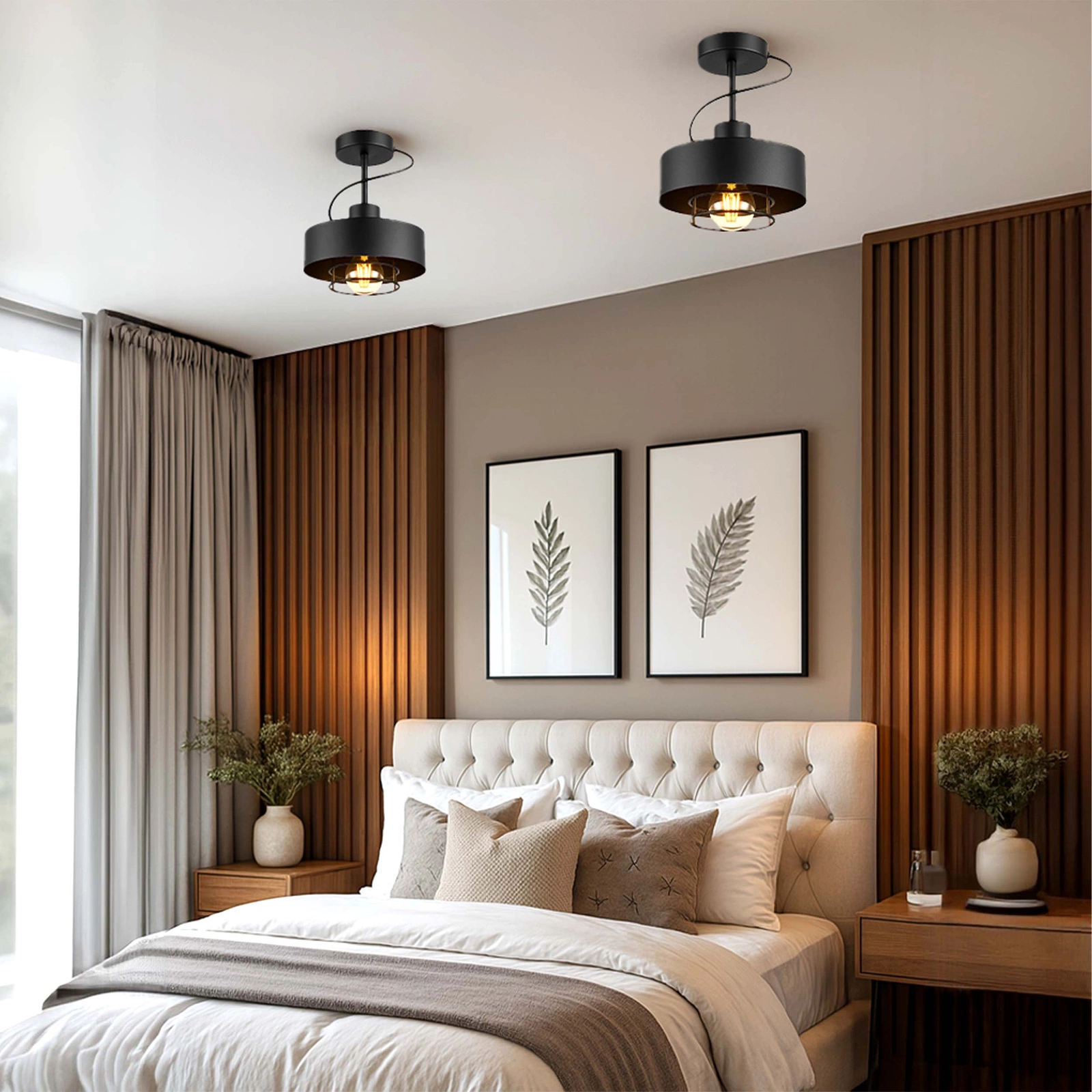 - ✴️Nowoczesna lampa sufitowa loftowa czarna Ø20 cm | Styl industrialny z ozdobnym przewodem i metalowym detalem . Wprowadź do wnętrza niepowtarzalny klimat dzięki designerskiej lampie sufitowej w stylu loftowym. Model ten łączy prostotę formy z ciekawym detalem dekoracyjnym – spiralnie poprowadzonym przewodem, który przyciąga wzrok i nadaje lampie charakteru. Całość uzupełnia czarna, matowa oprawa z delikatną osłoną żarówki, która dodaje industrialnego uroku.