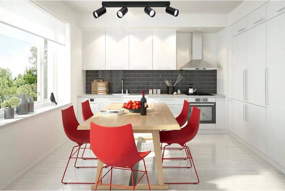 Opinie o Zestaw Oprawa Sufitowa Natynkowa Reflektor Listwa LX- 8360-4 Czarna + 4x Żarówka GU10 5,5W biała neutralna LEDLUX
