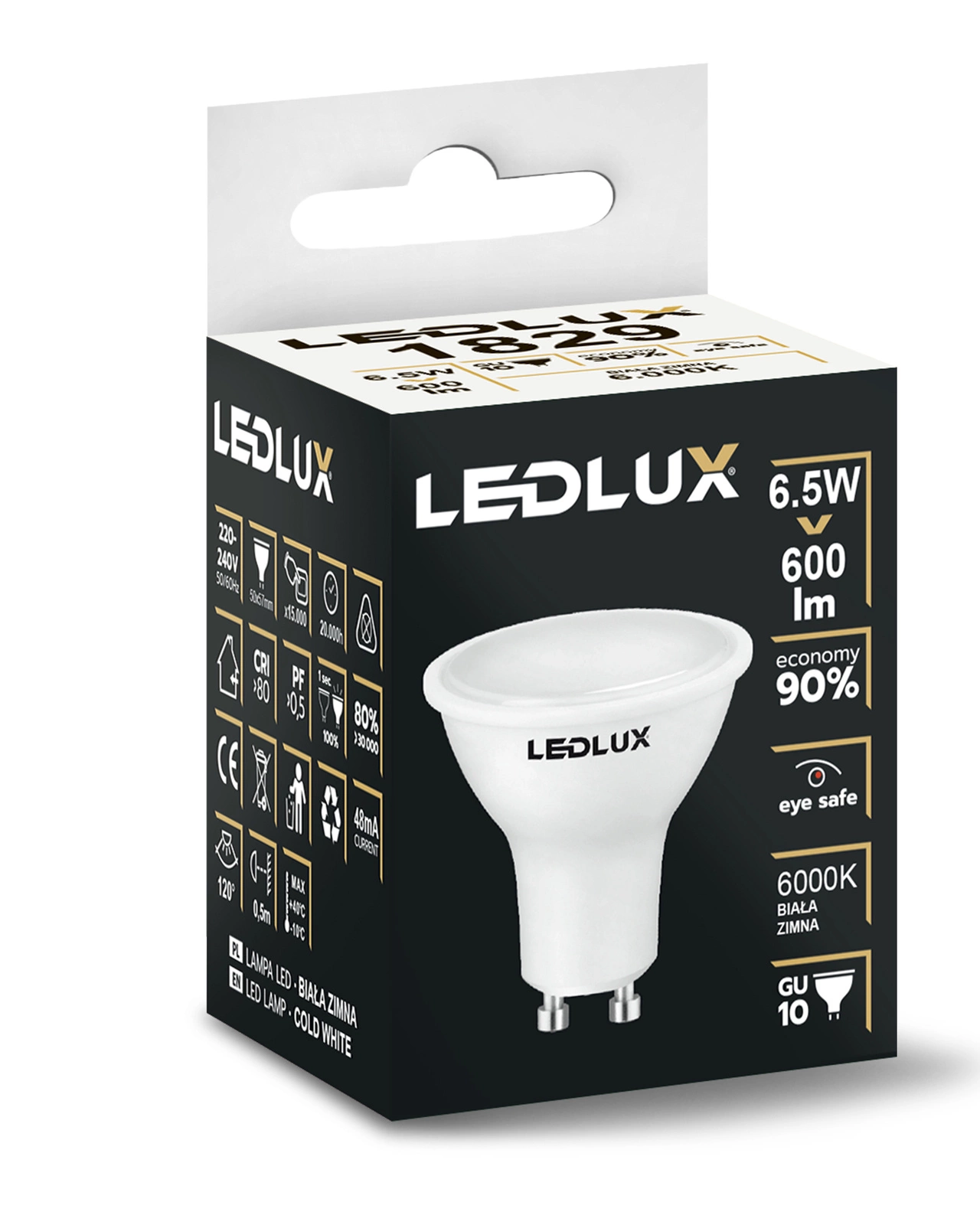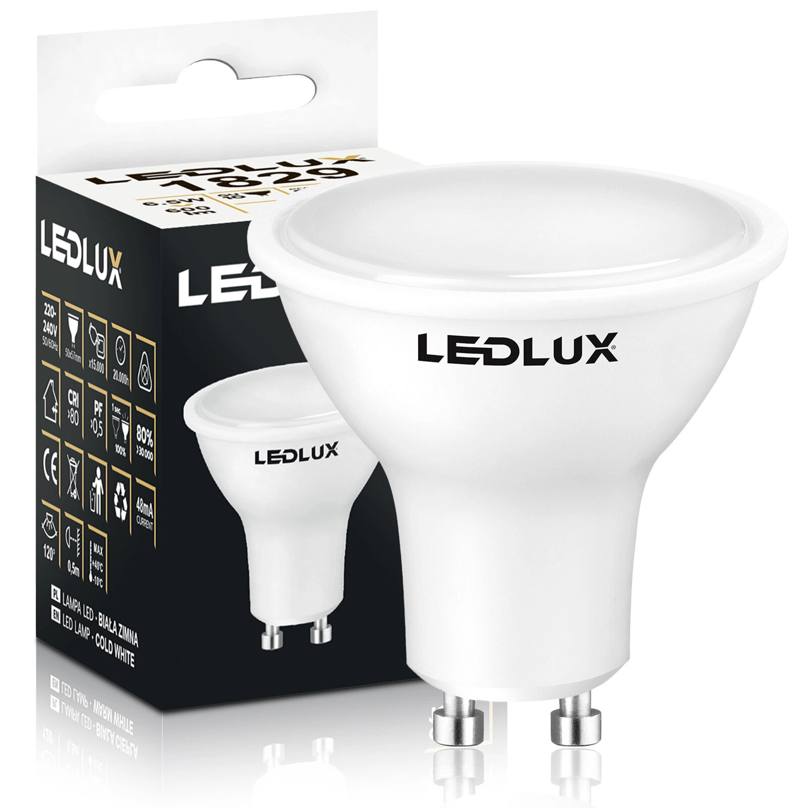 Żarówka LED GU10 6,5W = 60W 600lm 6000K biała zimna LEDLUX
