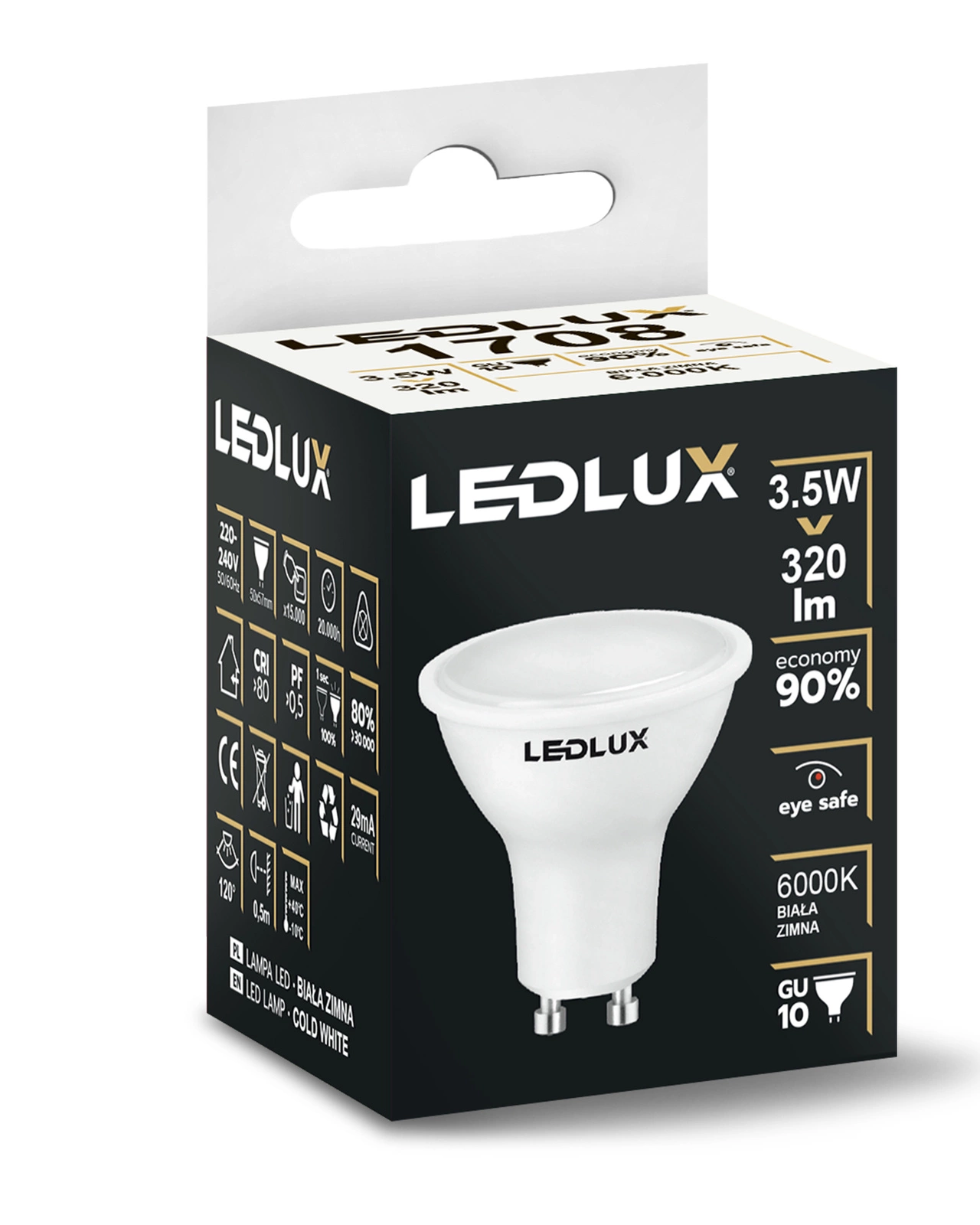 Żarówka LED GU10 3,5W = 35W 320lm 6000K biała zimna LEDLUX