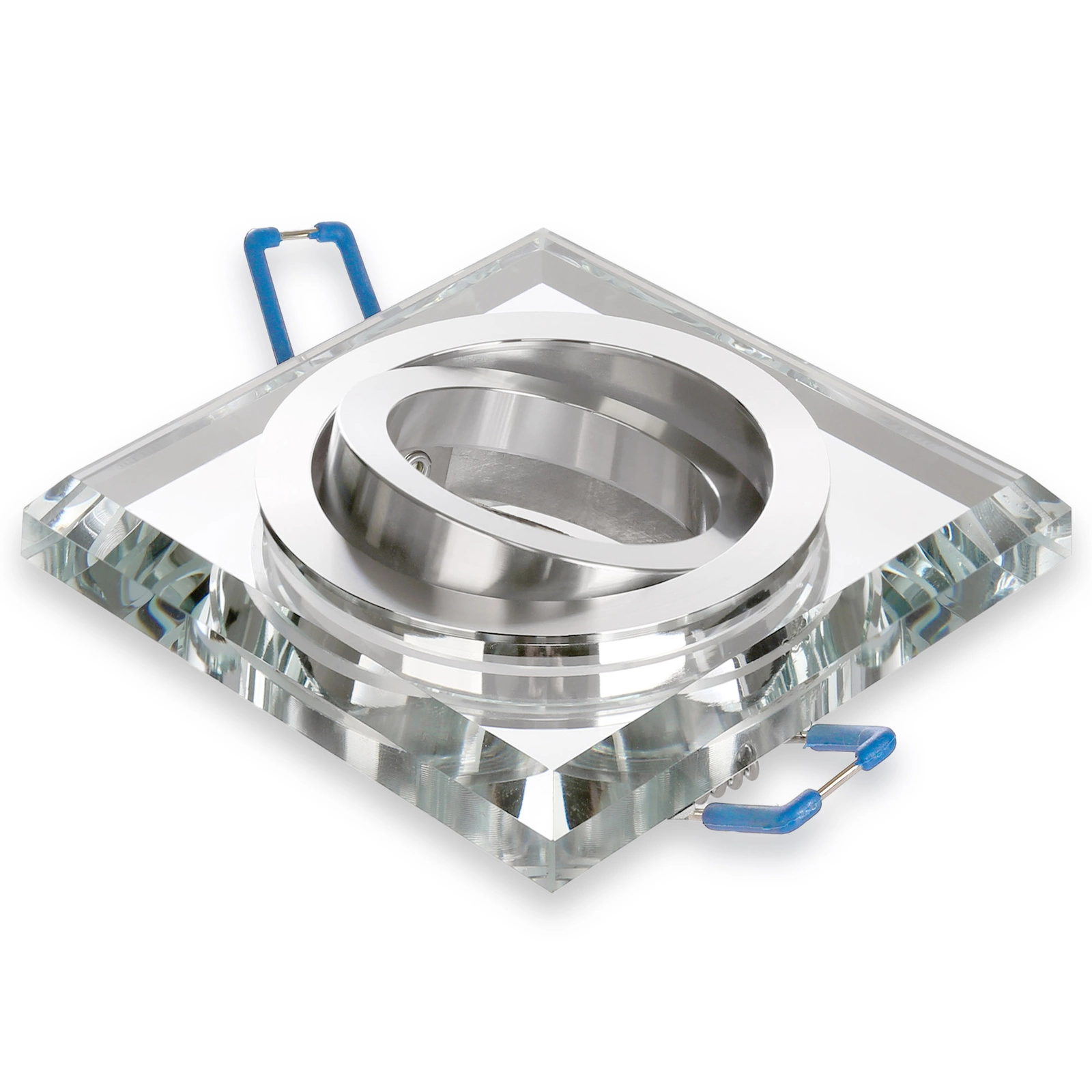 - 6x oprawa podtynkowa szklana lustrzana ruchoma ▪️Kształt: kwadratowy ▪️Materiał: szkło kryształowe + metal ▪️Kolor: przezroczysty / srebrny ▪️Wymiary zewnętrzne: 9 × 9 cm ▪️Wysokość całkowita: 2,3 cm ▪️Kompatybilność: żarówki GU10 / MR16 ▪️Sposób montażu: uchwyty sprężynowe ▪️Certyfikaty: CE, RoHS
