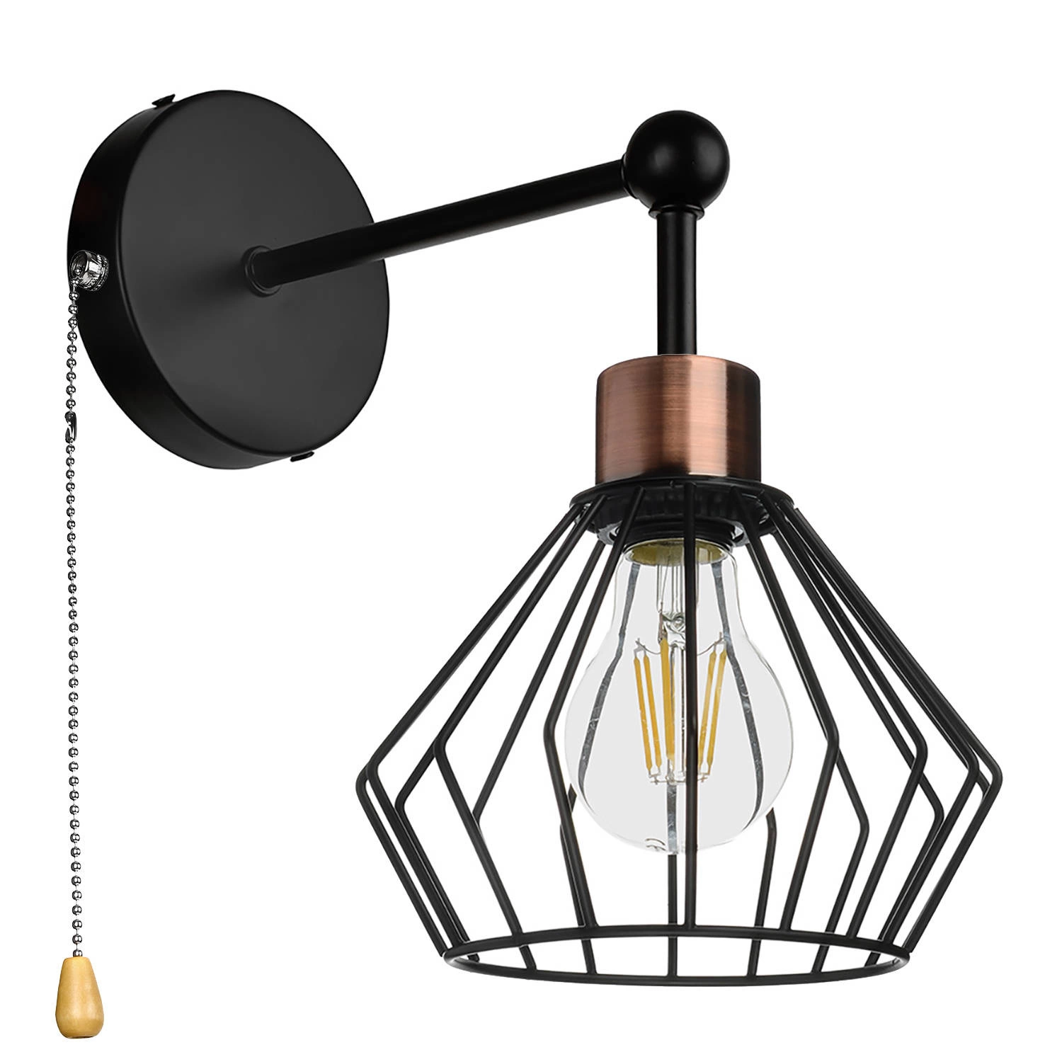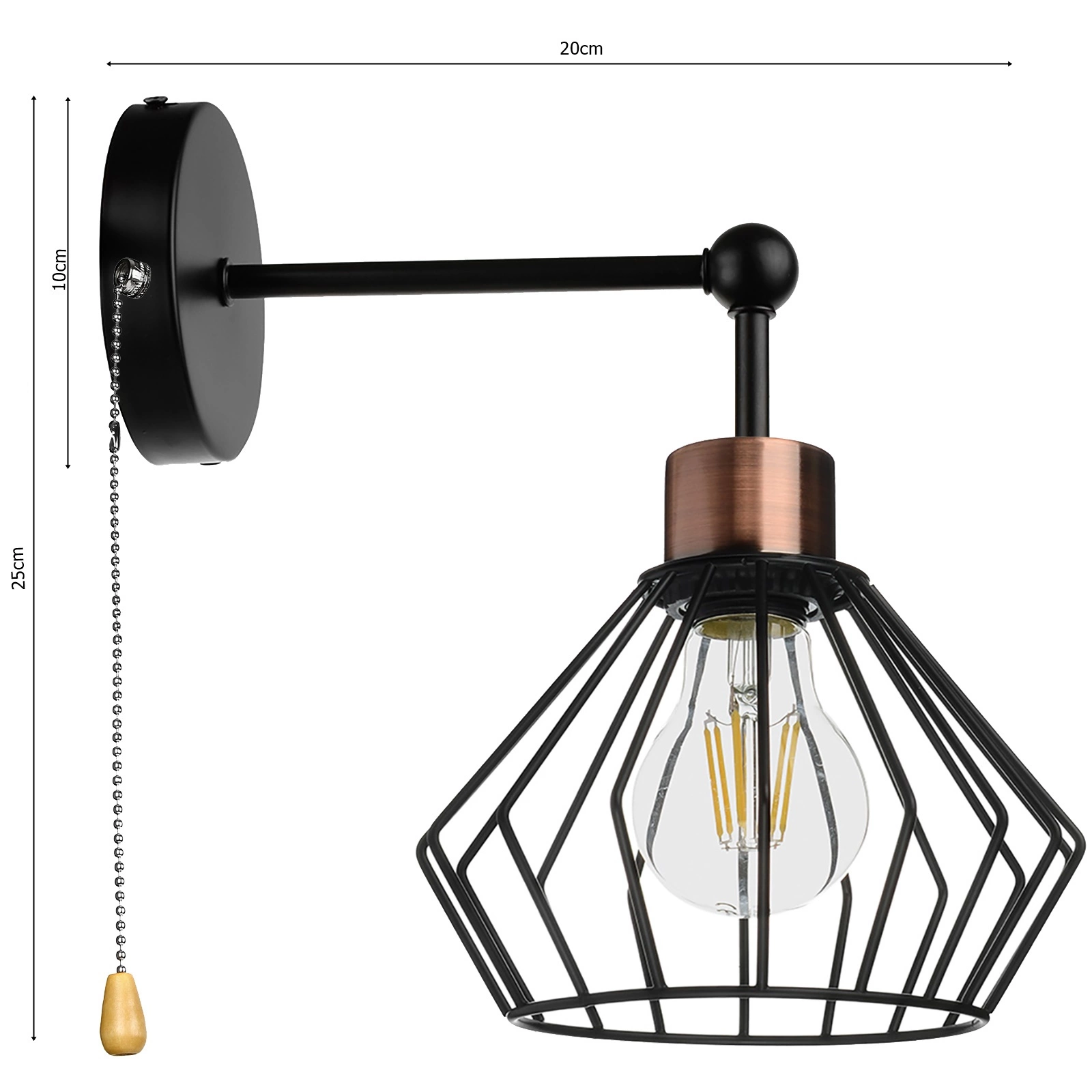 Kinkiet Lampa Ścienna LX- 1026 Czarna + Miedź z Włącznikiem 1x E27