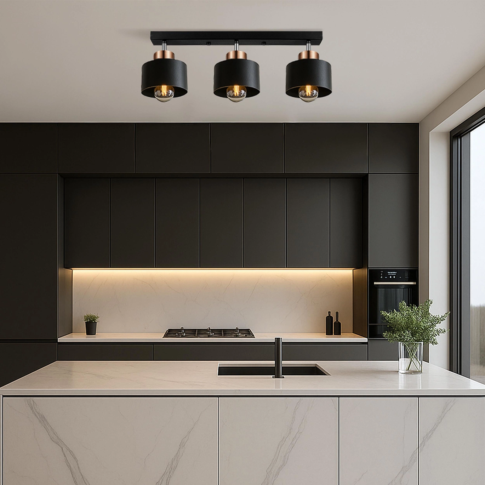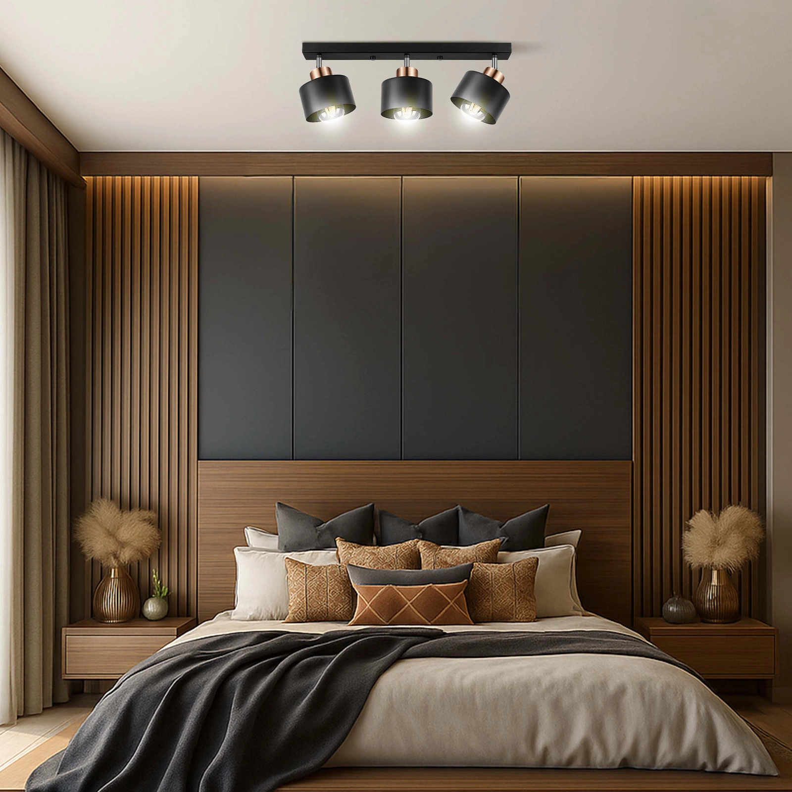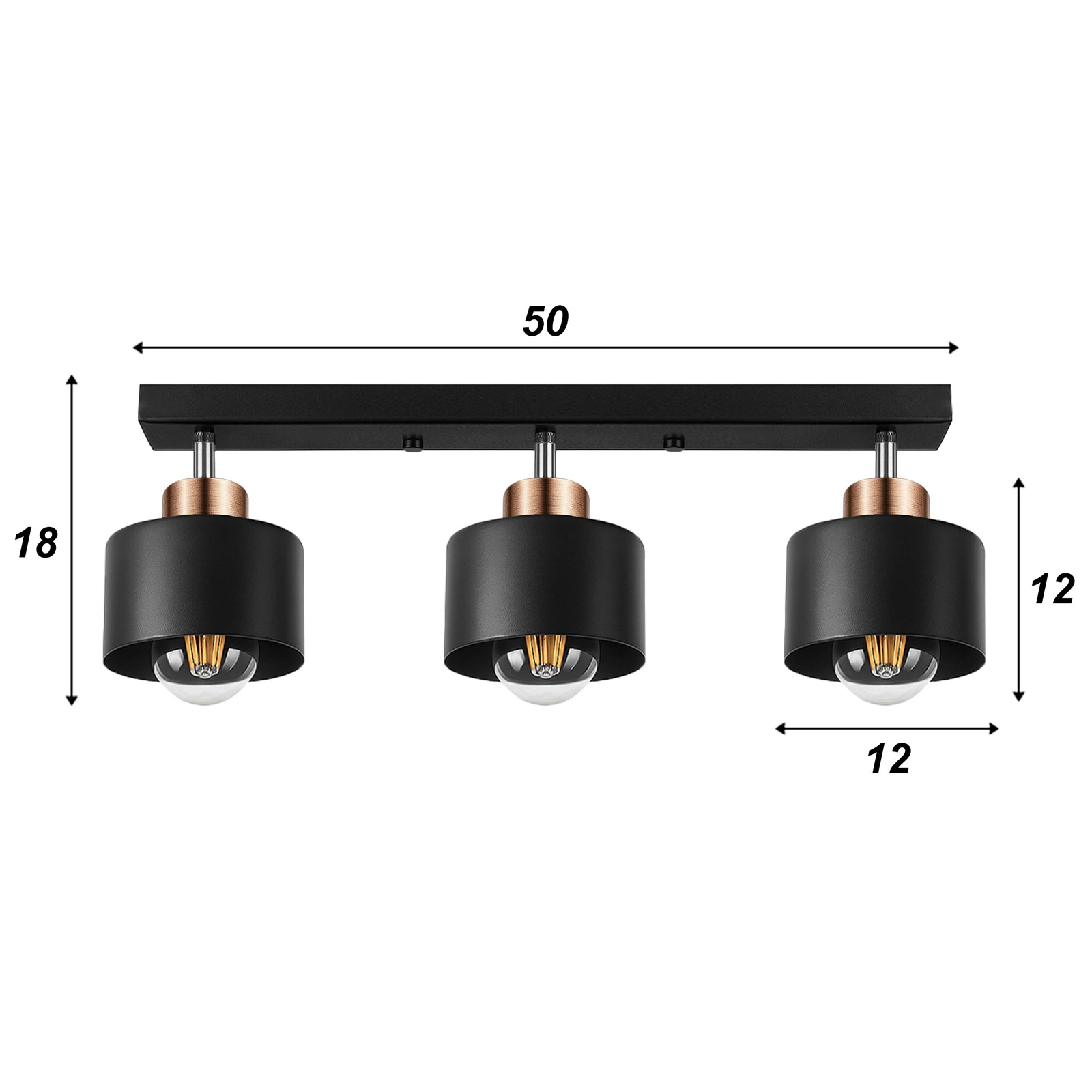 ✴️Nowoczesna lampa sufitowa 3-punktowa w kolorze czarnym z elementami miedzi