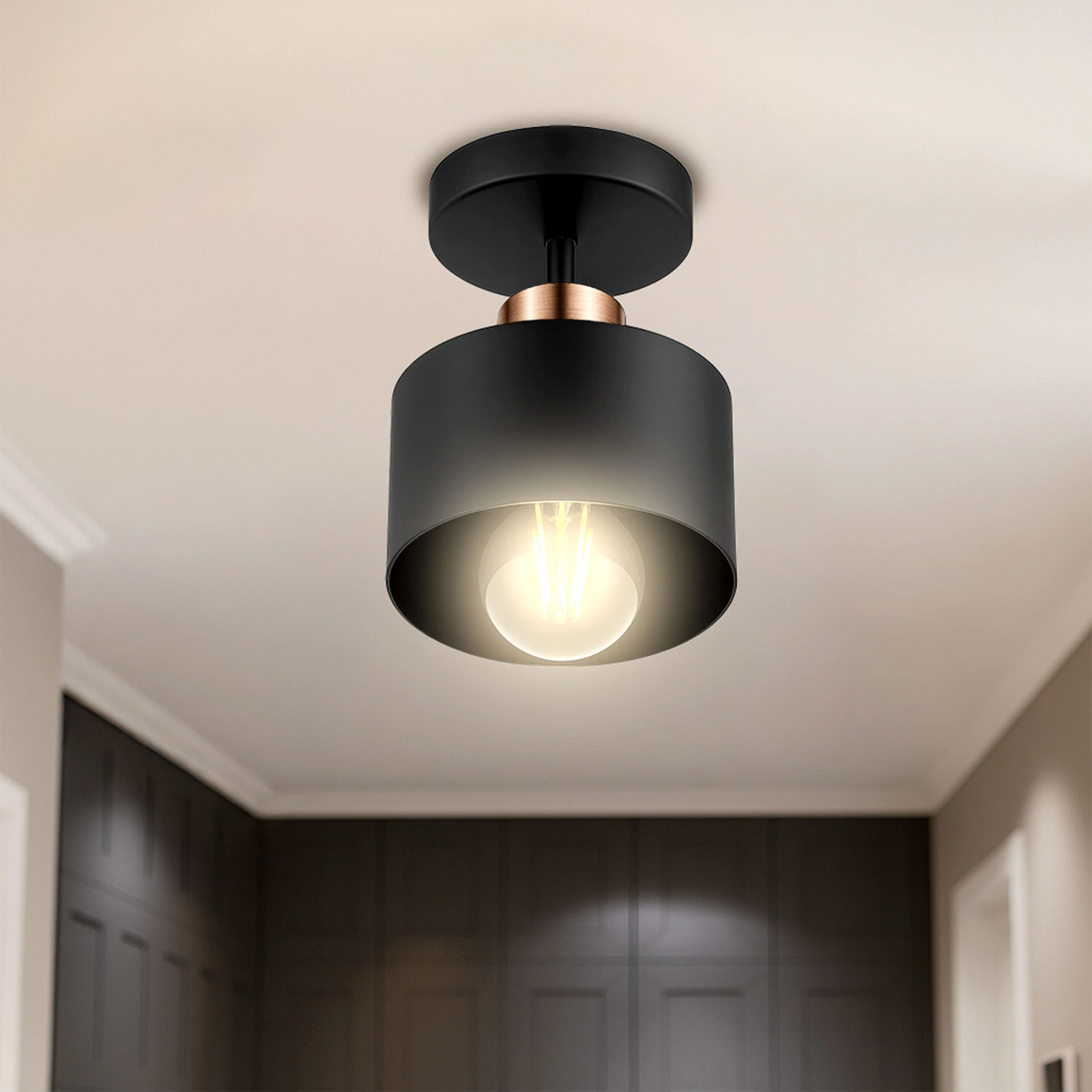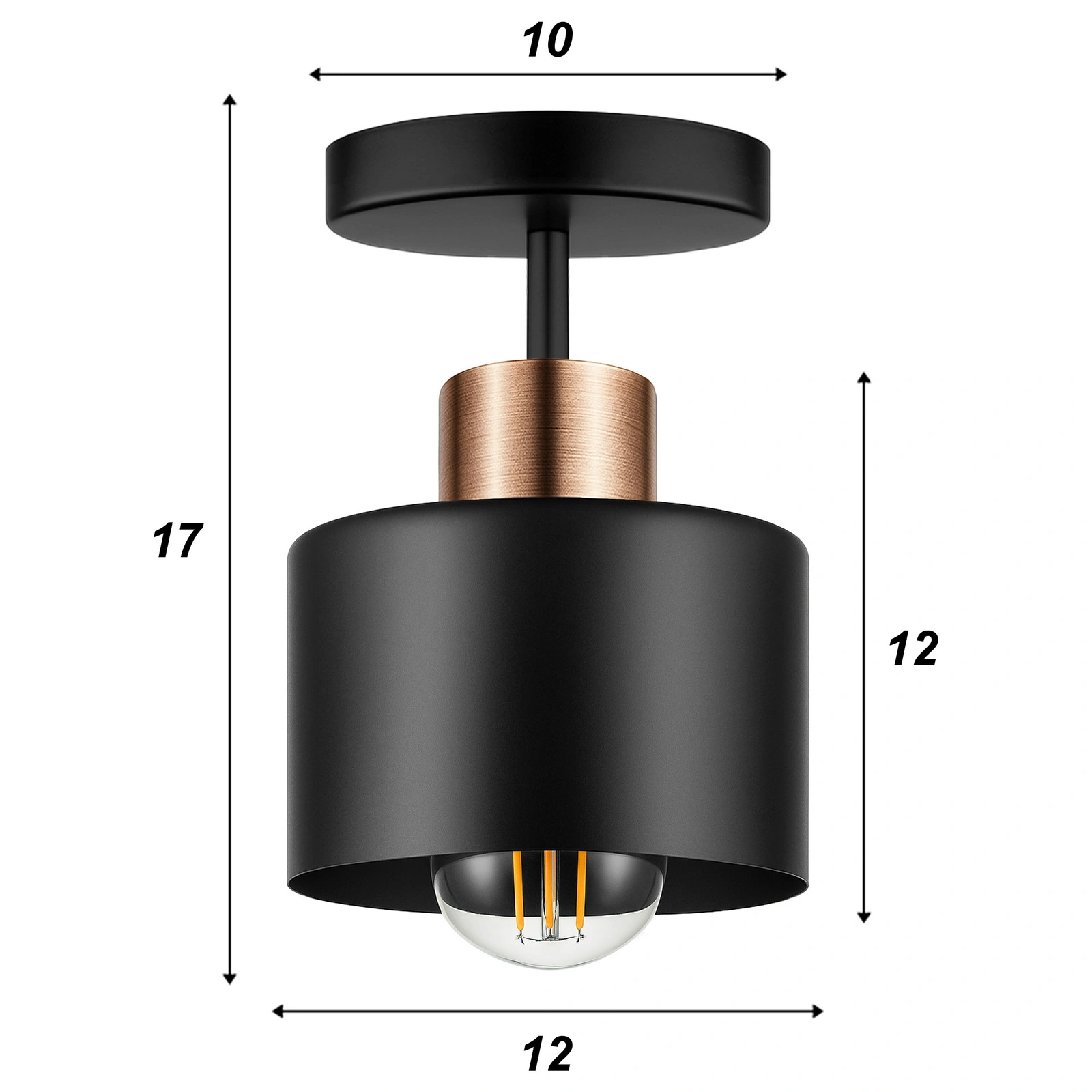 - Szukasz lampy, która odmieni Twój salon, kuchnię lub jadalnię? Prezentujemy naszą stylową, czarną lampę sufitową z miedzianym akcentem, będącą idealnym połączeniem nowoczesnej lampy sufitowej z surowym charakterem lampy loft oraz nutą elegancji stylu glamour. Dzięki uniwersalnemu designowi, ta lampa industrialna wniesie do każdego pomieszczenia wyjątkowy klimat i funkcjonalne oświetlenie. To więcej niż światło – to element dekoracyjny!