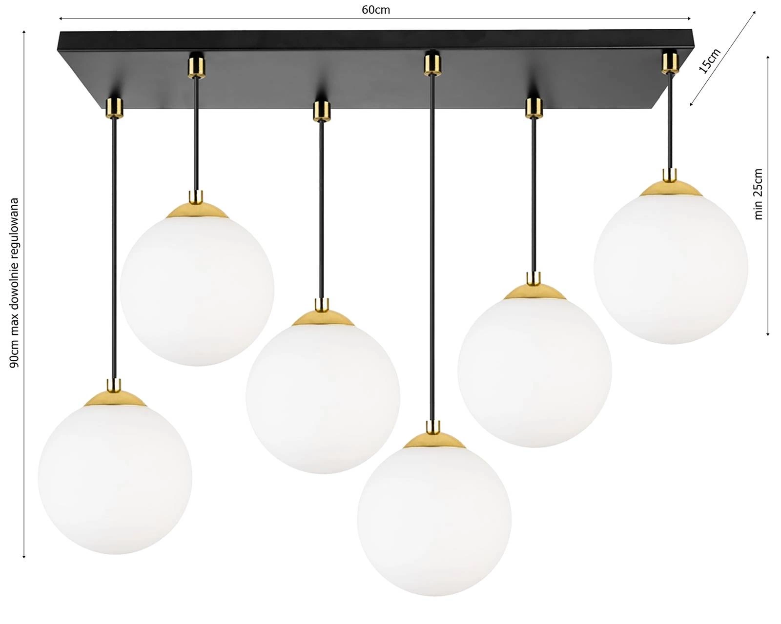 Lampa Wisząca Lx- 1288 Czarna + Złoto 6x E27