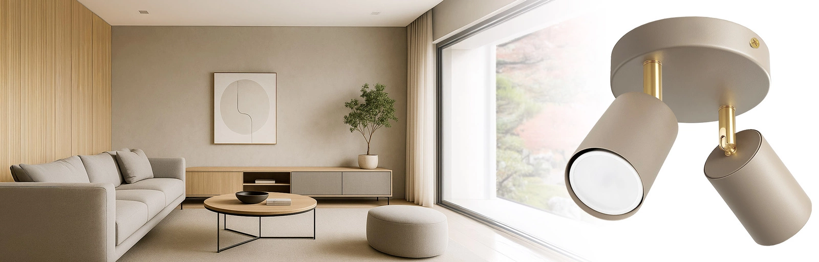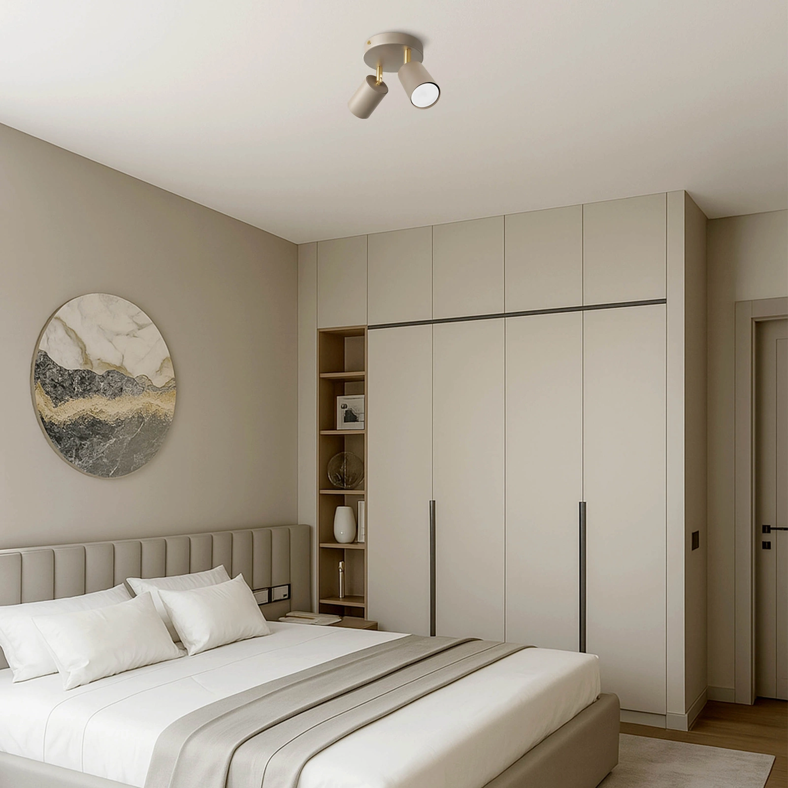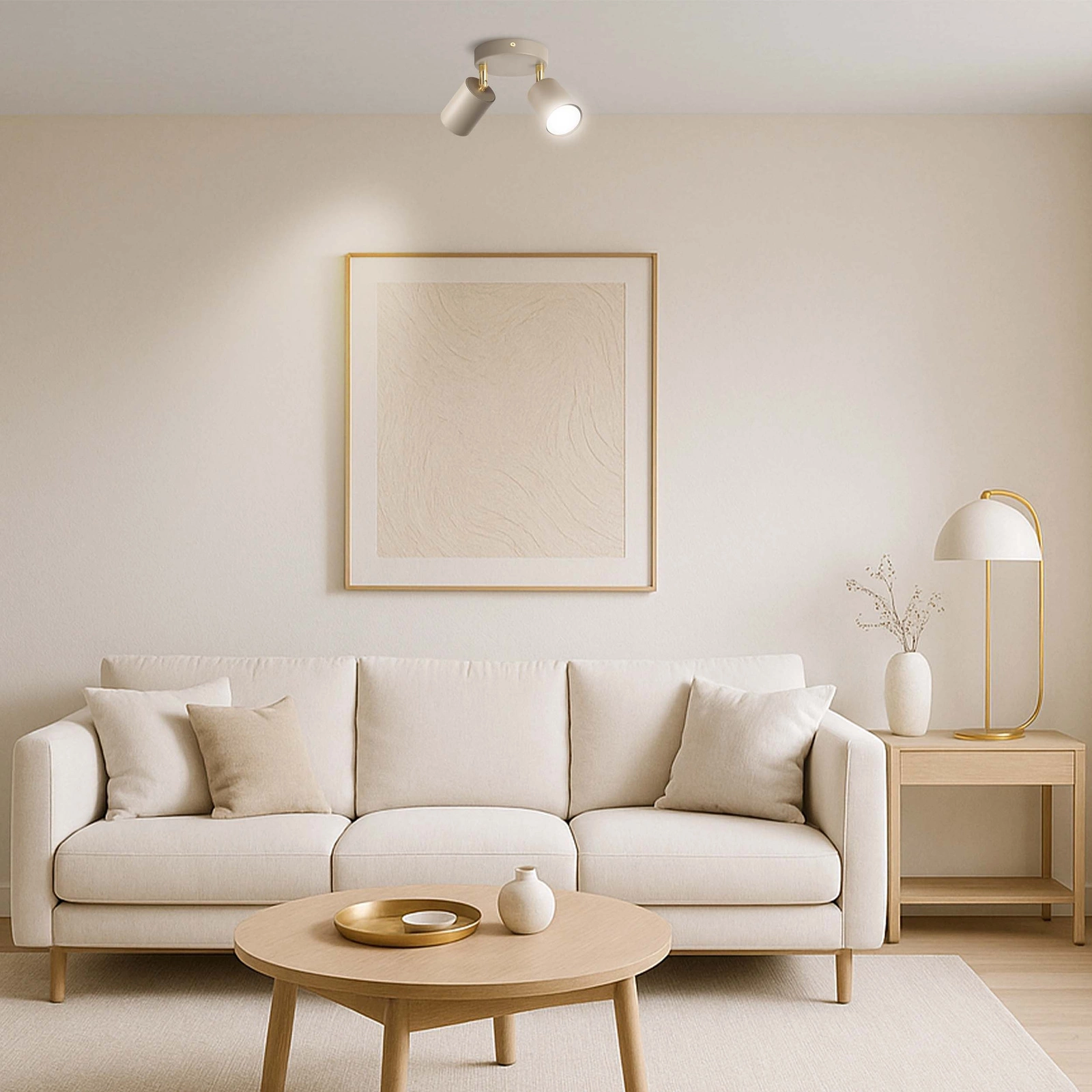 ✴️ Nowoczesna Lampa Sufitowa Spot 2 źródła światła – Beżowa / Kaszmirowa ze Złotymi Akcentami