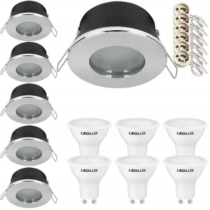 Zestaw 6x Oprawa Halogenowa Hermetyczna D-06 Chrom + 6x Żarówka GU10 12W biała zimna LEDLUX