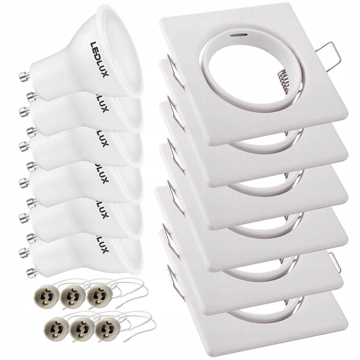 Zestaw 6x Oprawa Halogenowa CT- 001 Biała Kwadratowa + Żarówka GU10 7.5W biała zimna LEDLUX