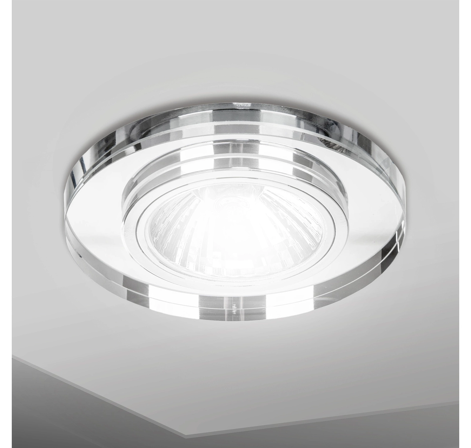 - 6x oprawa podtynkowa szklana lustrzana nieruchoma ▪️Kształt: okrągły ▪️Materiał: szkło kryształowe + metal ▪️Kolor: lustrzany ▪️Średnica oprawy: 9 cm ▪️Wysokość całkowita: 1,8 cm ▪️Kompatybilność: żarówki GU10 / MR16 ▪️Sposób montażu: uchwyty sprężynowe ▪️Certyfikaty: CE, RoHS