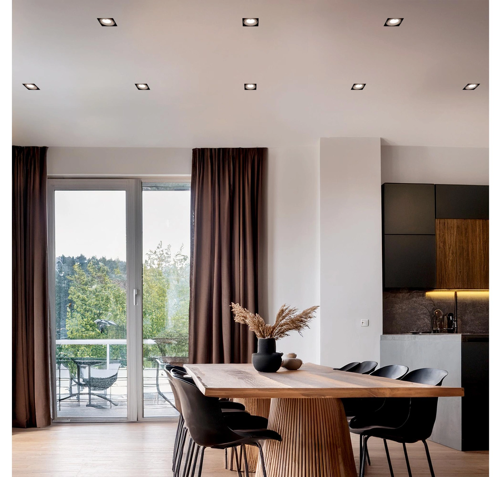 - 4x oprawa podtynkowa szklana czarna nieruchoma ▪️Kształt: kwadratowy ▪️Materiał: szkło kryształowe + metal ▪️Kolor: czarny ▪️Wymiary zewnętrzne: 9 × 9 cm ▪️Wysokość całkowita: 2 cm ▪️Kompatybilność: żarówki GU10 / MR16 ▪️Sposób montażu: uchwyty sprężynowe Certyfikaty: CE, RoHS