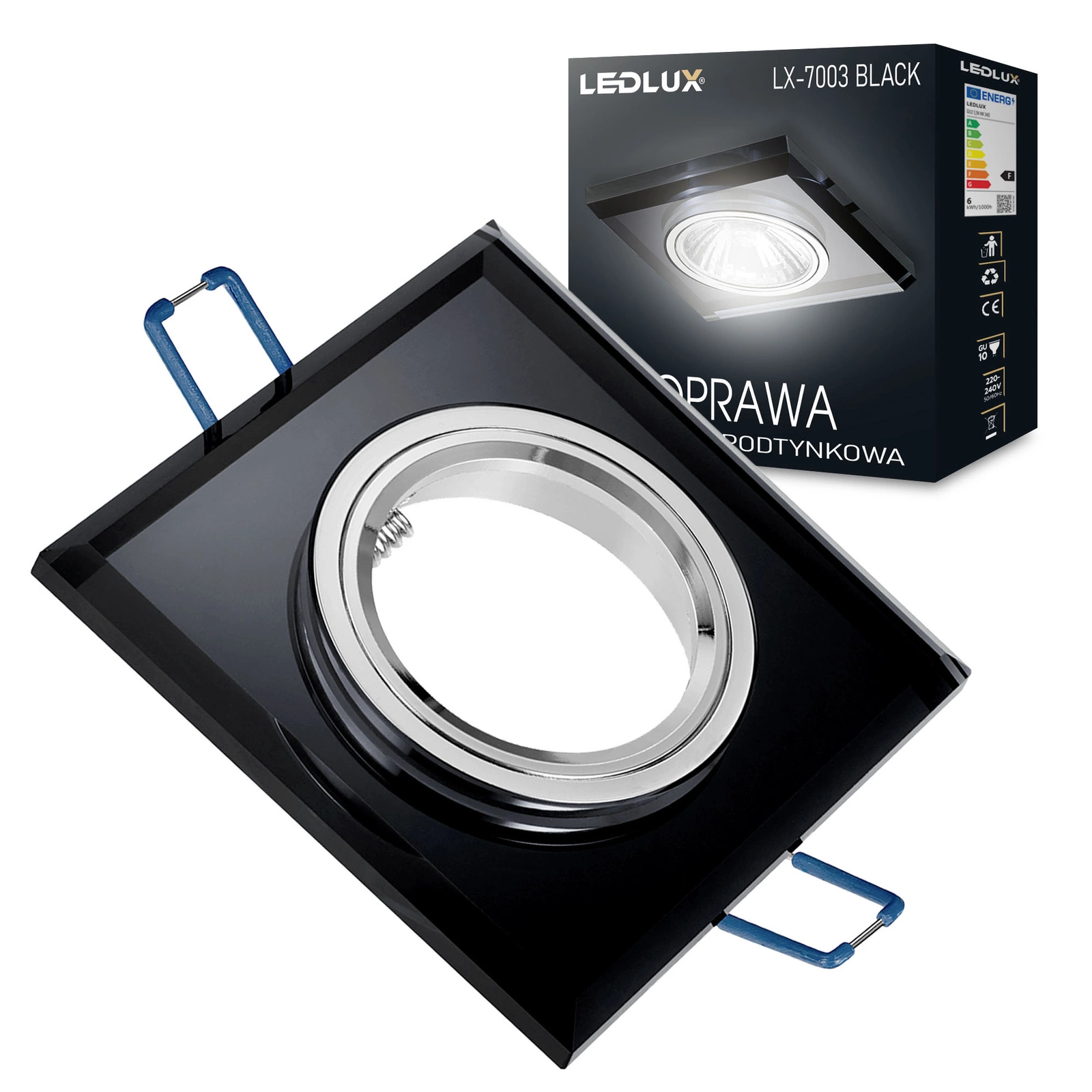 Zestaw 4x Oprawa Halogenowa Szklana LX-7003 Czarna Kwadratowa + Żarówka LED GU10 1,5W biała zimna LEDLUX