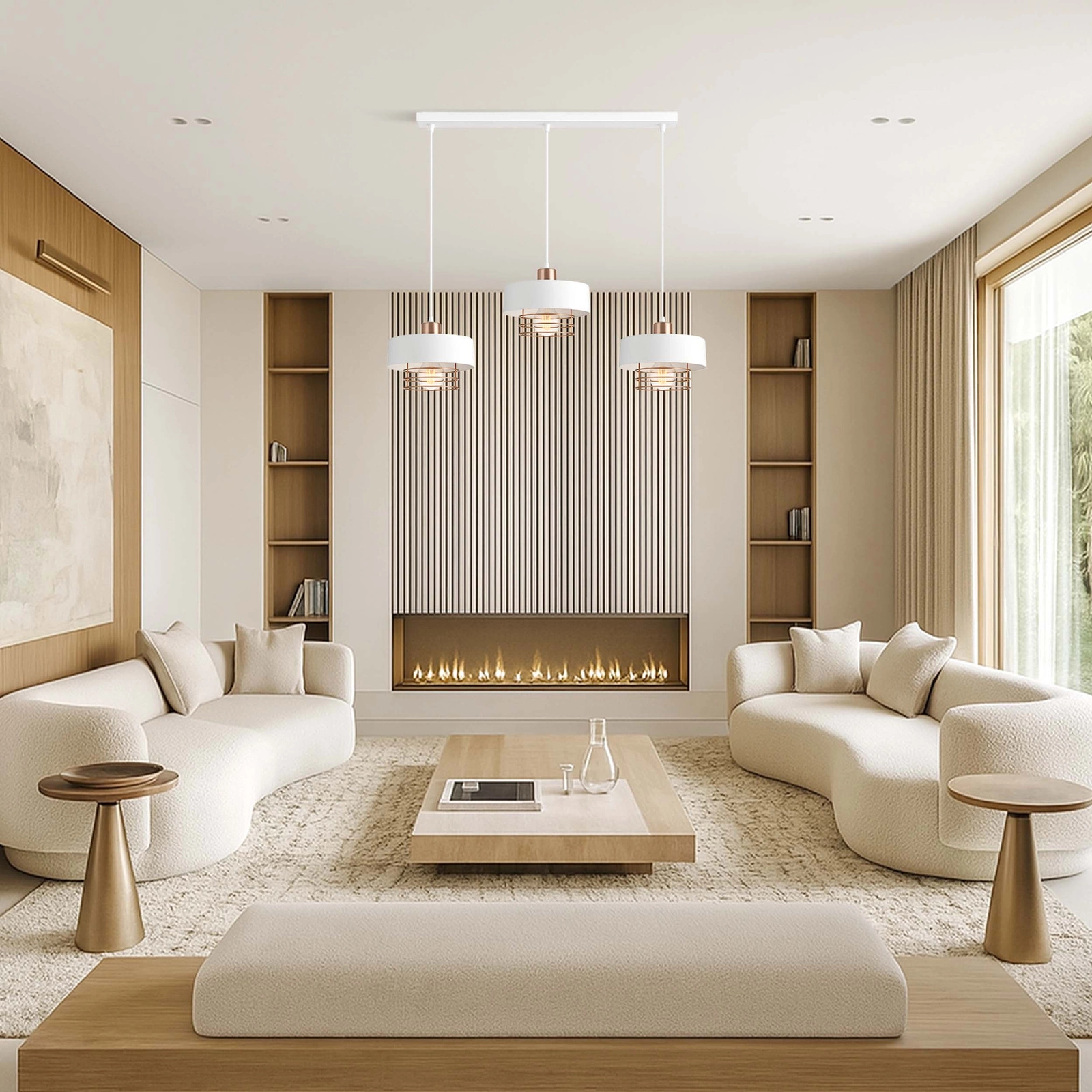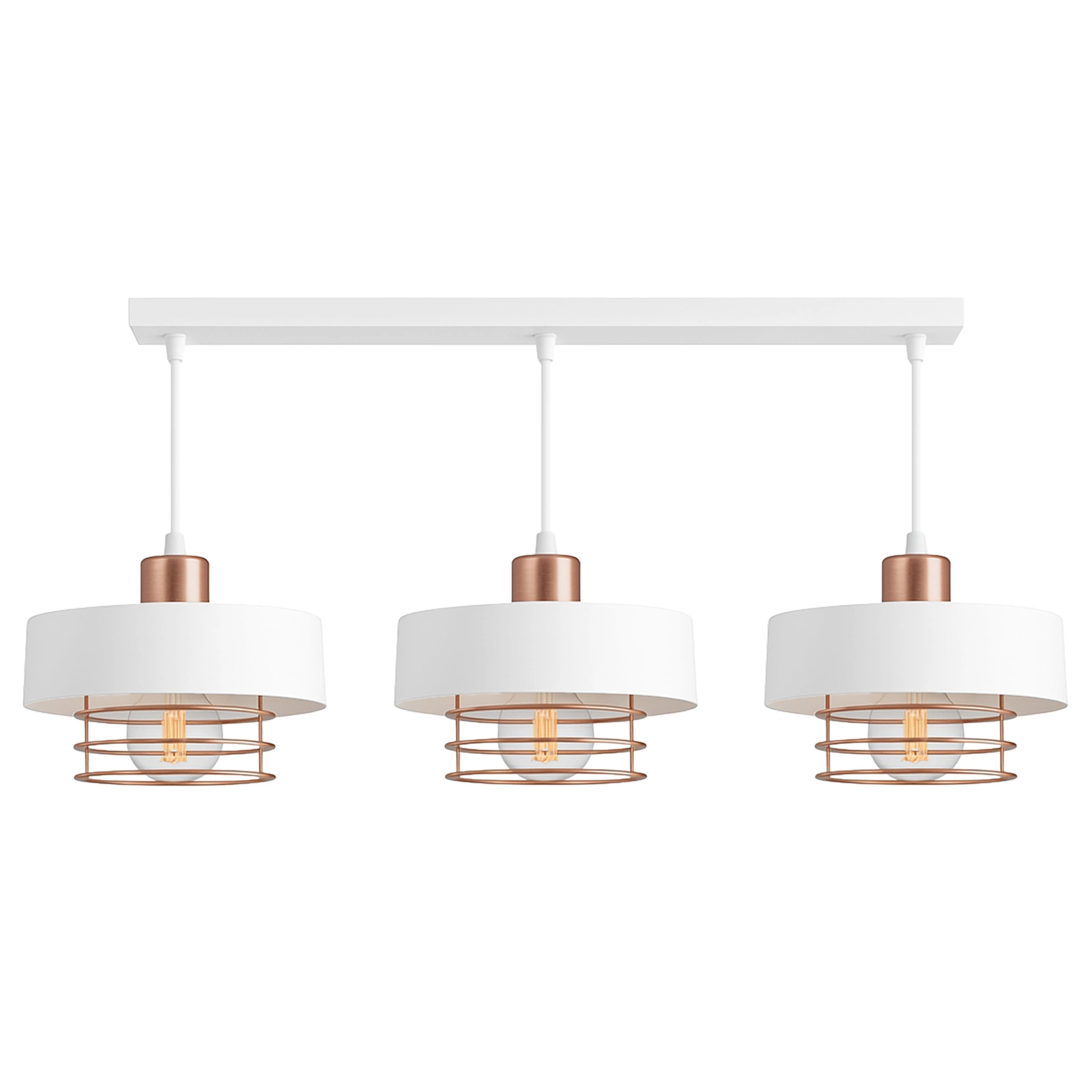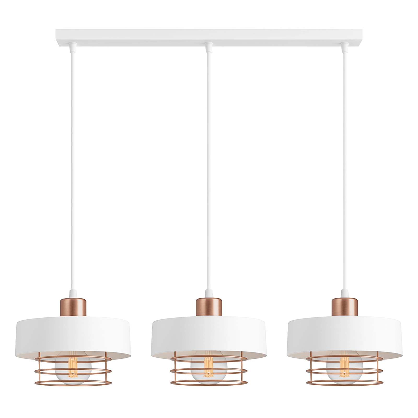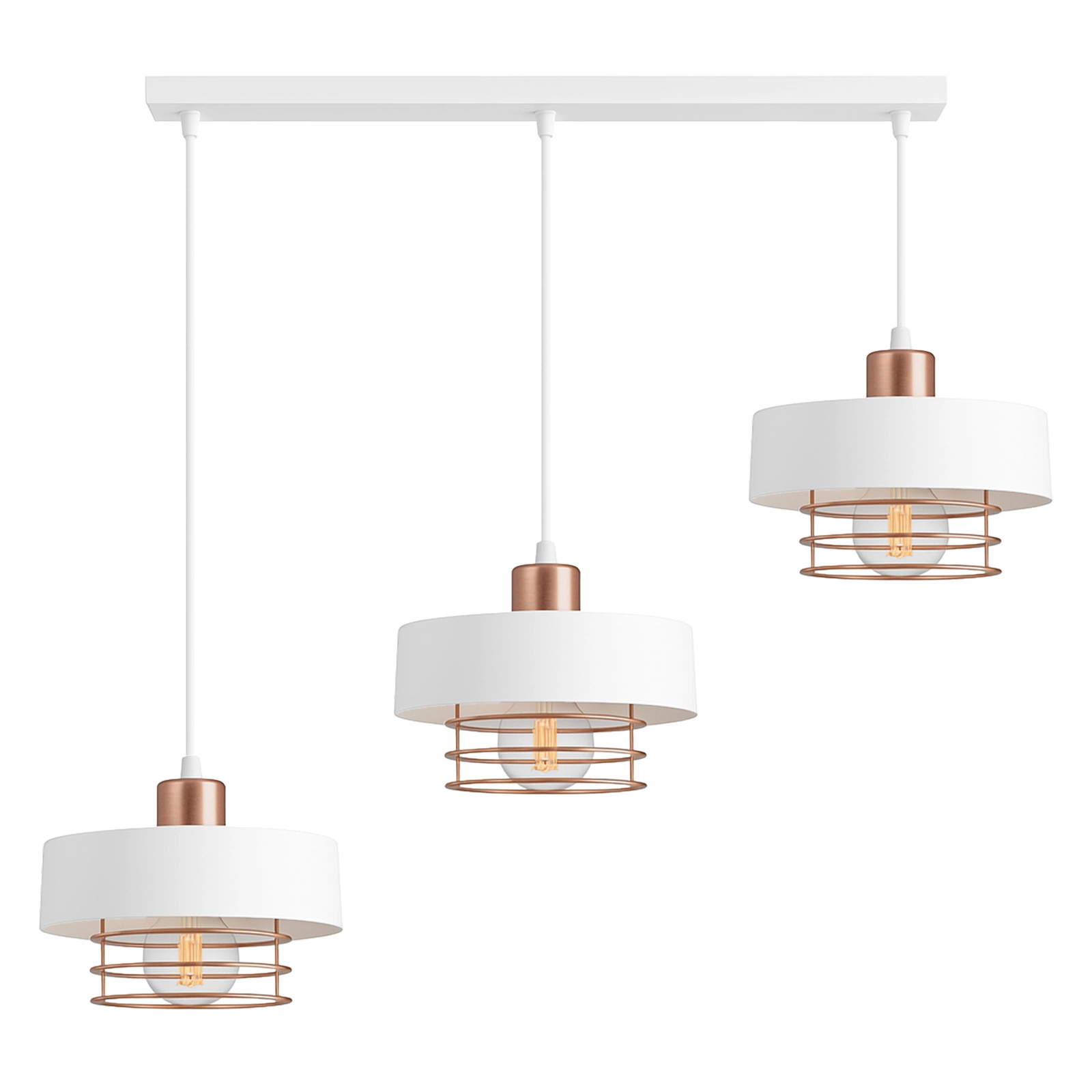 - ⚙️Specyfikacja techniczna: ▪️Kolor: biały mat + miedziane akcenty ▪️Ilość punktów świetlnych: 3 ▪️Gwint: E27 ▪️Regulowana wysokość zawieszenia – do 90 cm ▪️Szerokość belki: 60 cm ▪️Średnica klosza:20 cm ▪️Materiał: metal malowany proszkowo ▪️Zasilanie: 230V ▪️Żarówki: brak w zestawie (możliwość zastosowania LED) ▪️Montaż sufitowy – szybki i wygodny
