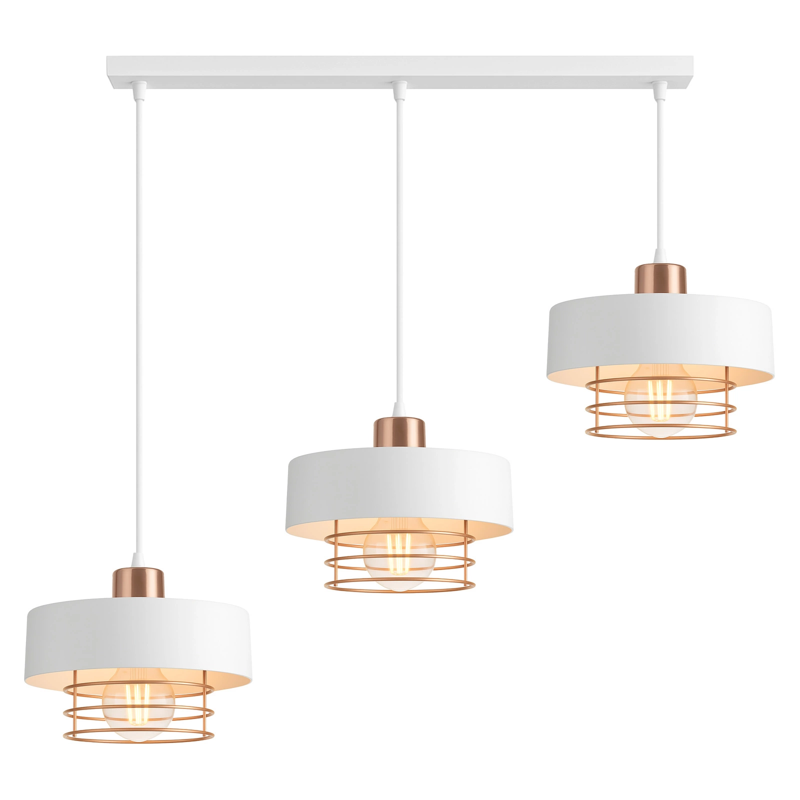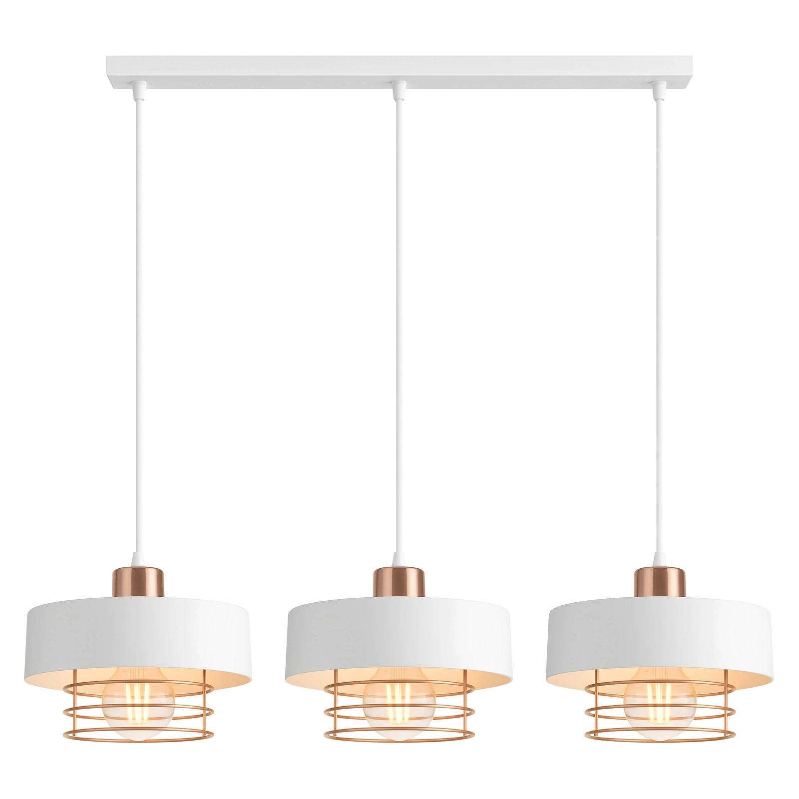 - ✴️Designerska lampa wisząca 3-ramienna biała z miedzianym wykończeniem | E27 | Styl loft / nowoczesny | Do kuchni, jadalni, nad stół lub wyspę. Szukasz nowoczesnej lampy wiszącej do kuchni lub jadalni? Ta biała lampa sufitowa z miedzianymi detalami łączy funkcjonalność z modnym designem. Trzy klosze z ozdobnym wykończeniem i otwartym dołem doskonale doświetlą blat kuchenny, wyspę lub stół jadalniany.
