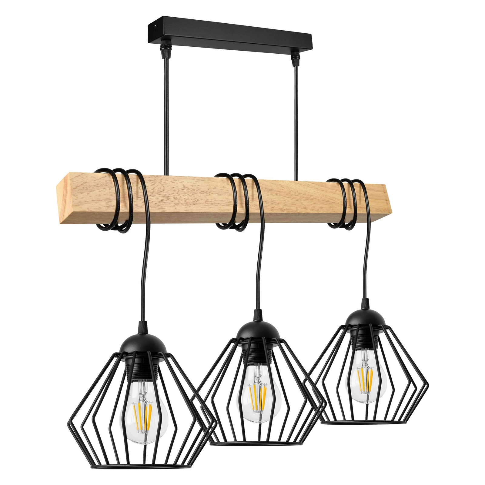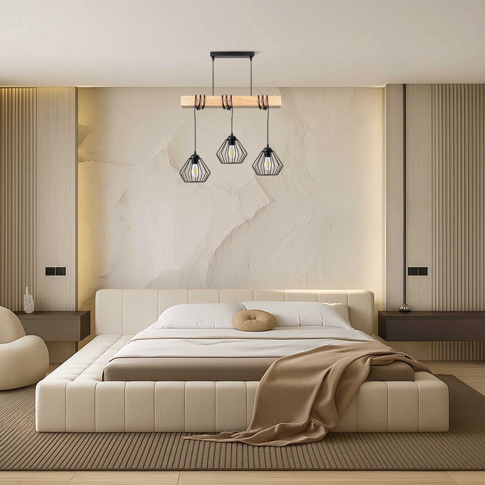 - ✴️Lampa wisząca 3-płomienna czarna z drewnem | Styl loft / glamour | E27 | Regulowana | Lampa nad stół i wyspę Nowoczesna lampa wisząca 3-płomienna to połączenie industrialnego charakteru z ciepłem drewna i wyjątkową formą. Idealna jako oświetlenie do kuchni, jadalni i salonu, a także jako lampa nad wyspę kuchenną lub lampa nad stół.