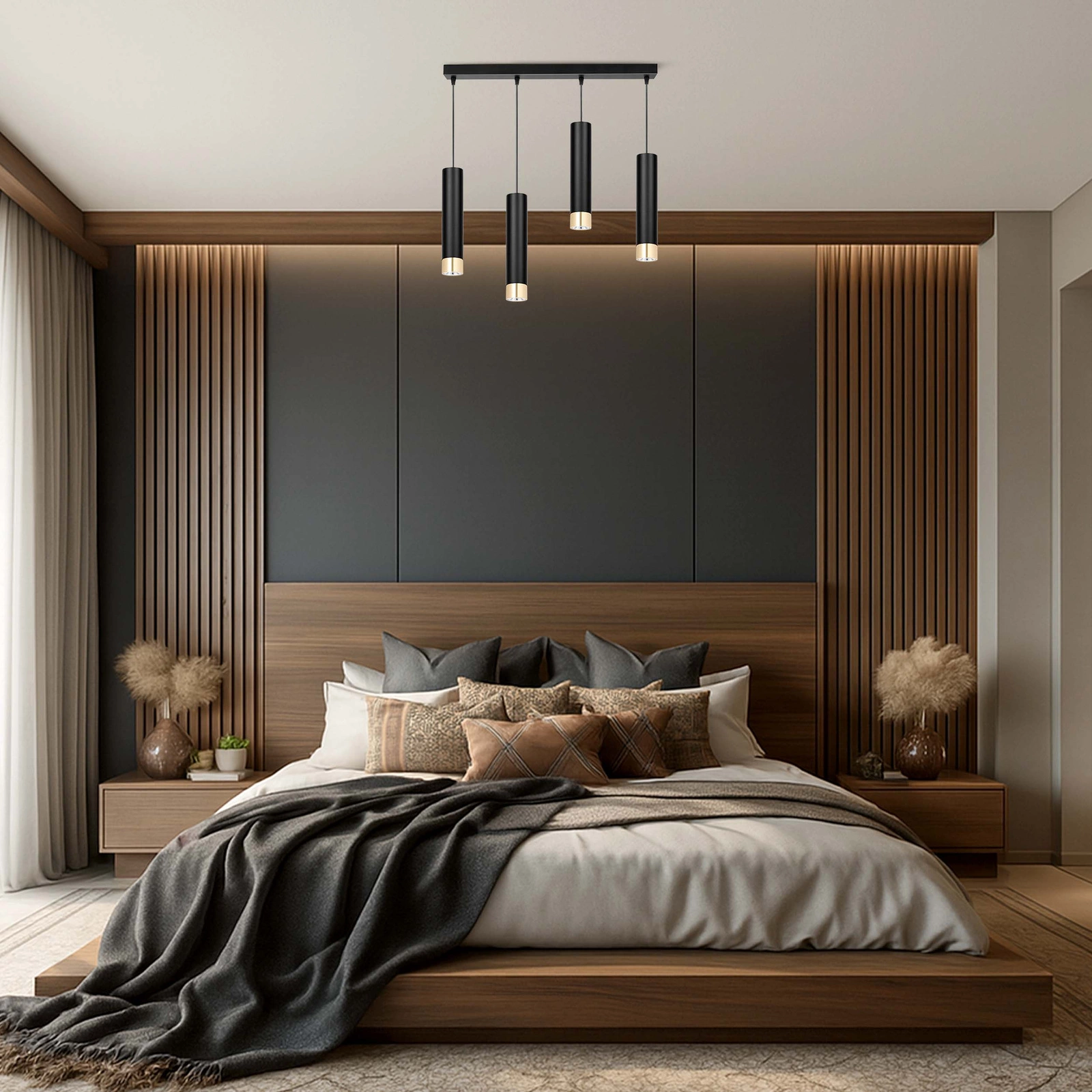 Szukasz oświetlenia, które połączy nowoczesną elegancję z funkcjonalnością? Ta 4-punktowa lampa wisząca w matowej czerni ze złotymi akcentami została zaprojektowana, by pięknie podkreślić wyspę kuchenną, stół w jadalni czy strefę wypoczynku. Smukłe tuby kierują światło dokładnie tam, gdzie chcesz, a płynna regulacja wysokości pozwala idealnie dopasować lampę do wnętrza i sceny, jaką tworzysz każdego dnia.