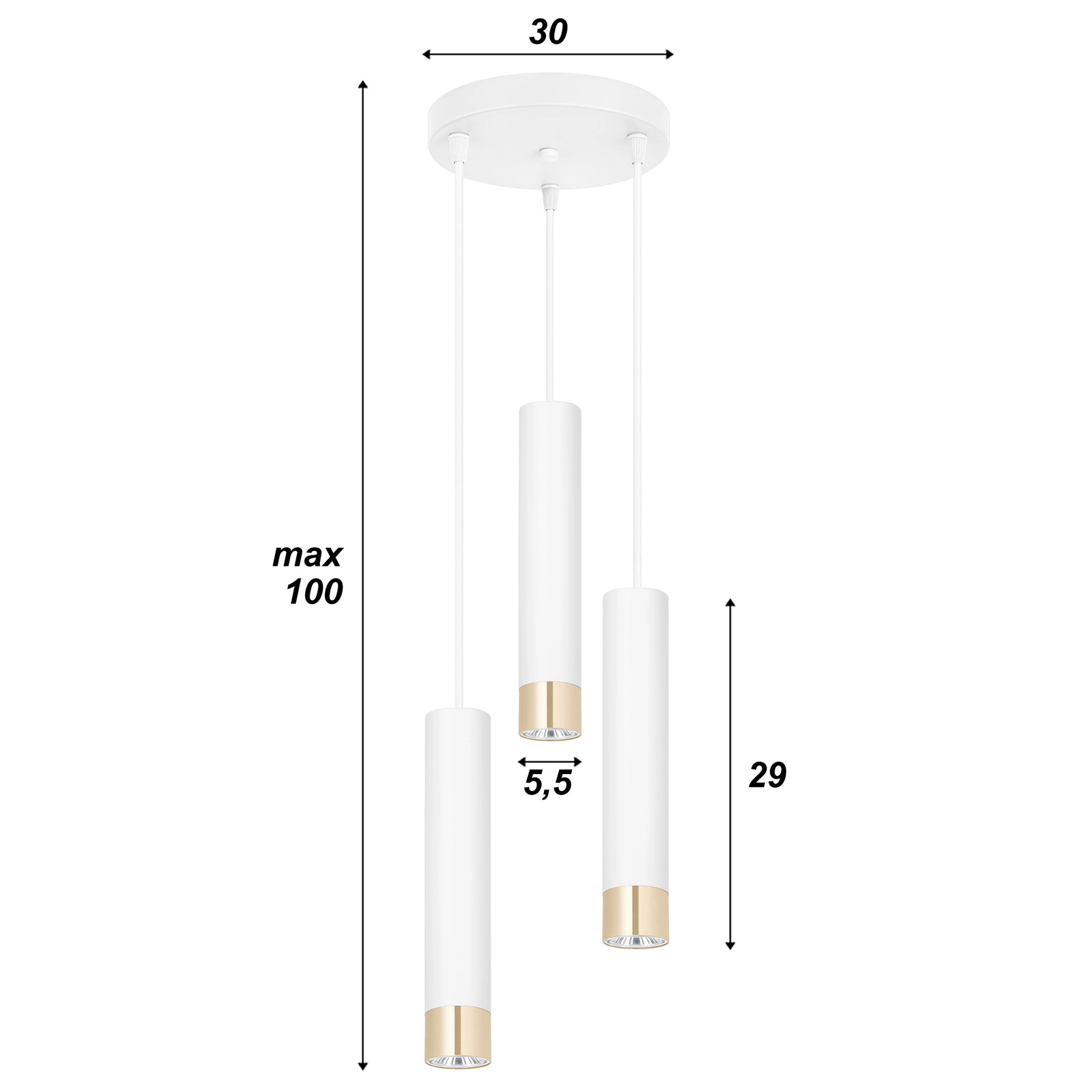 Nowoczesna lampa wisząca biało-złota 3-punktowa – tuby GU10, sufitowa nad stół