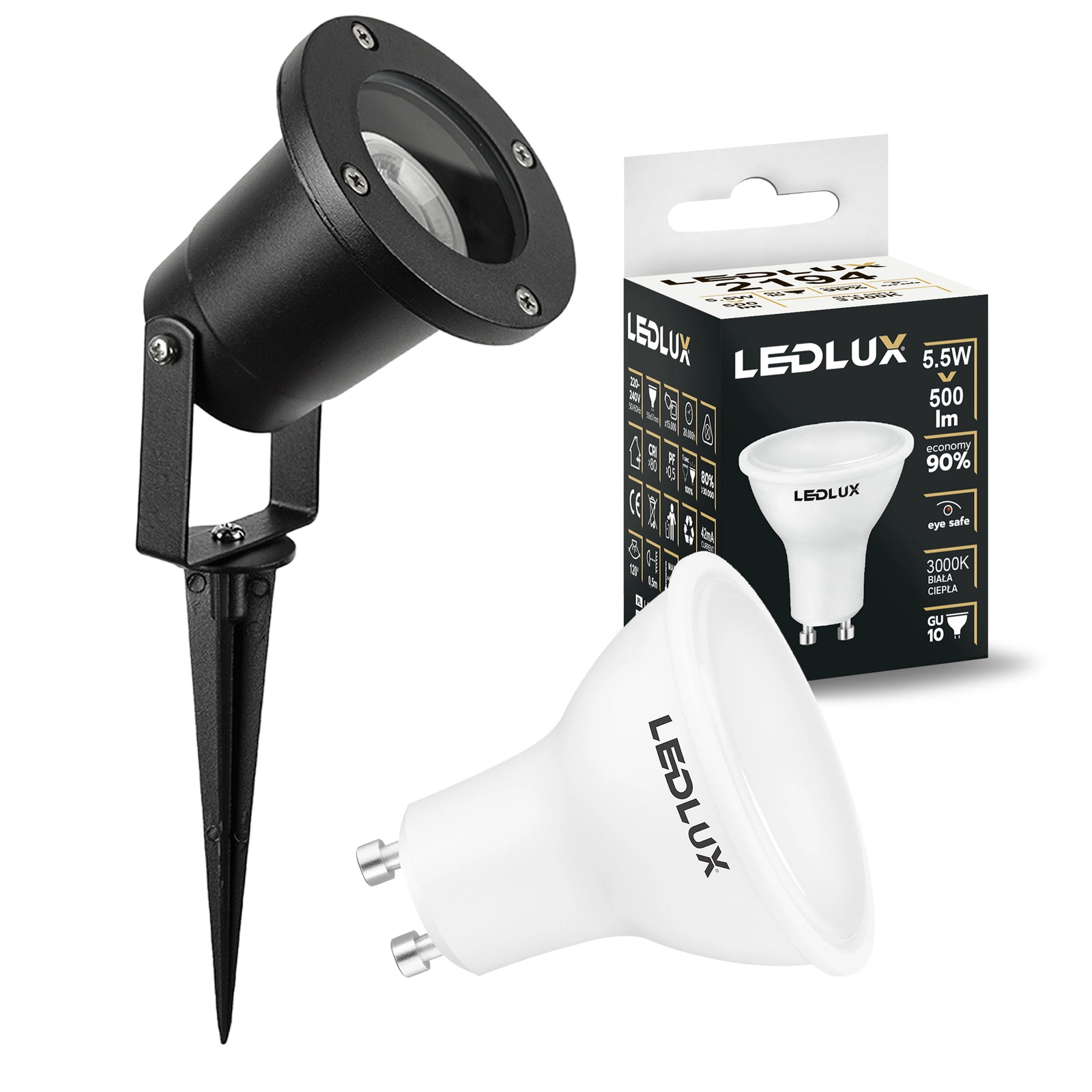Lampa Reflektor Ogrodowa Wbijana z Przewodem + Żarówka GU10 5,5W biała neutralna LEDLUX