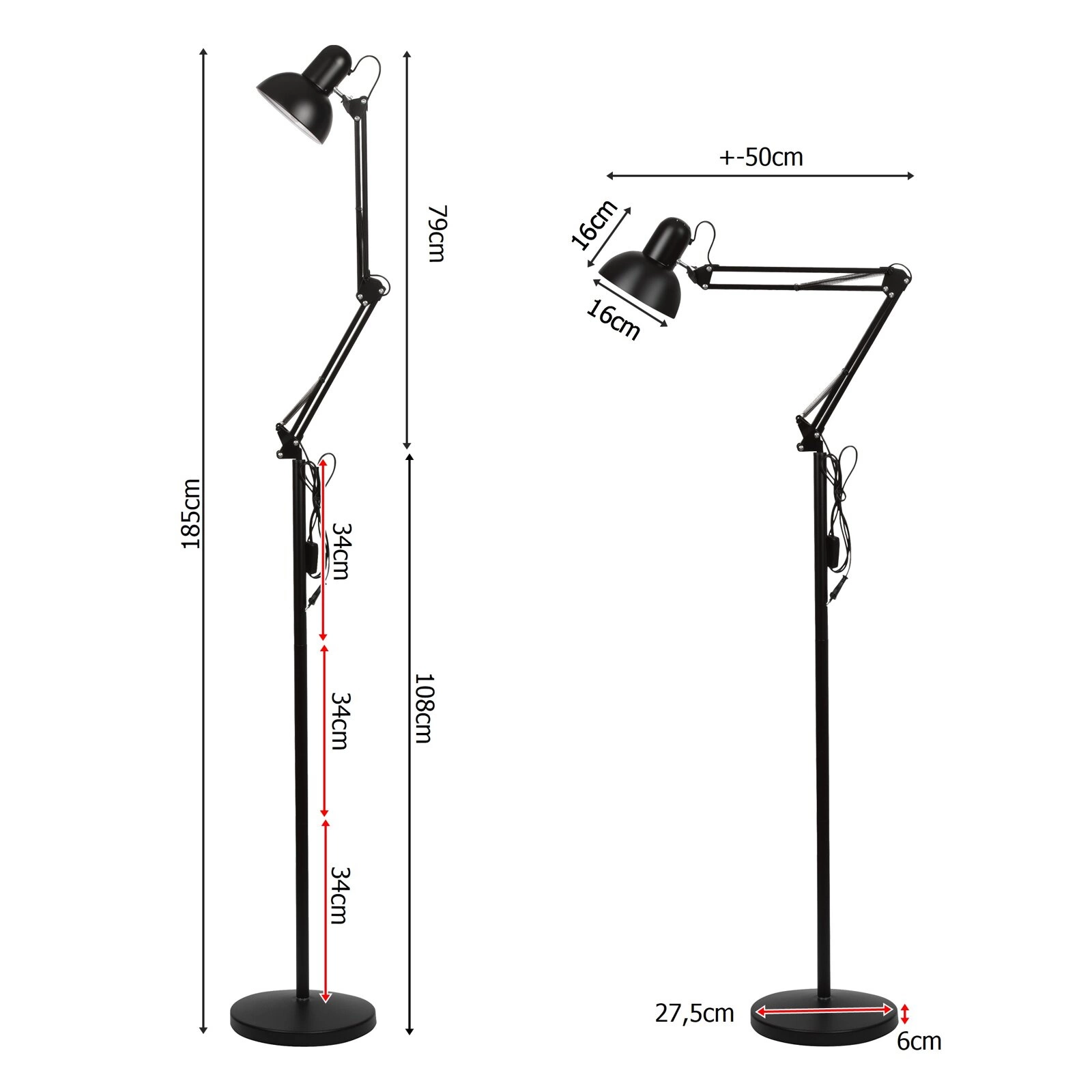 ✅ Regulowana wysokość: Zbudowana z trzech rurek, lampka umożliwia regulację wysokości, co pozwala dostosować oświetlenie do konkretnej potrzeby i zapewnić optymalne warunki pracy czy czytania.