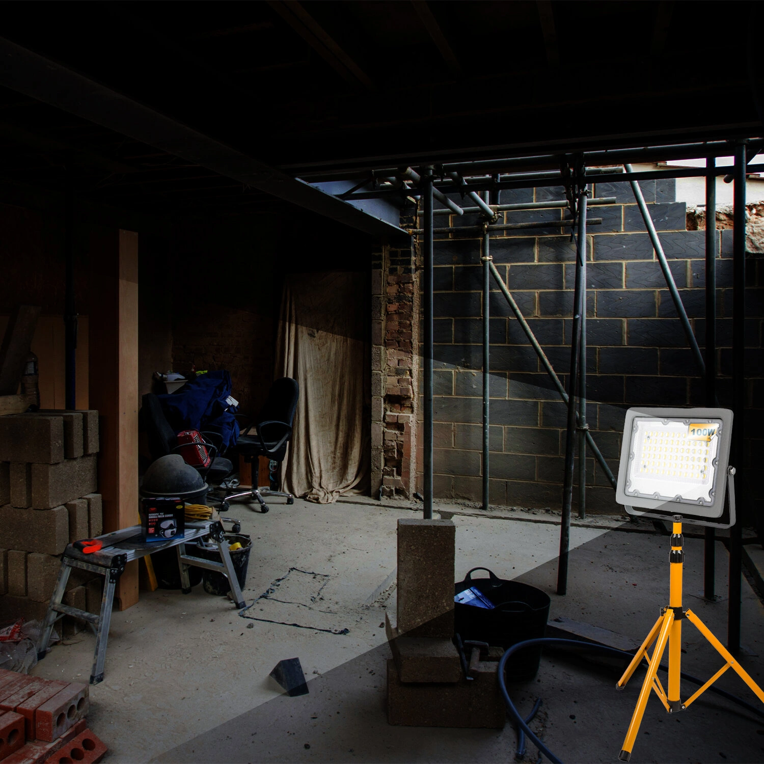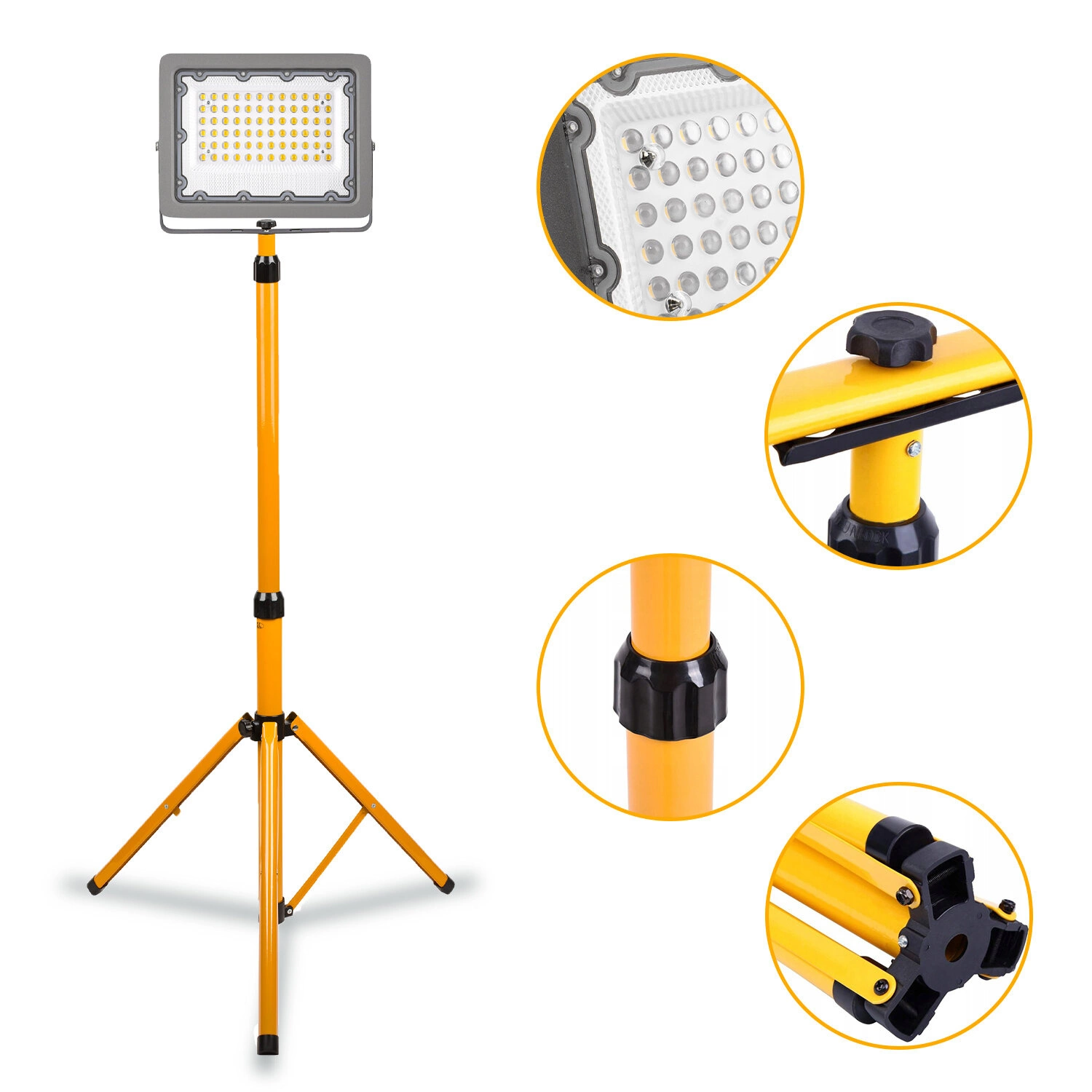 Idealne oświetlenie do każdego projektu - Zestaw- naświetlacz ze statywem teleskopowym wykonanym ze stali to wszechstronne rozwiązanie oświetleniowe, które znajdzie zastosowanie w wielu różnych sytuacjach. Wyposażony w nowoczesny halogen o mocy 100W i neutralnej białej barwie światła, idealnie nadaje się do zastosowań zarówno profesjonalnych, jak i domowych