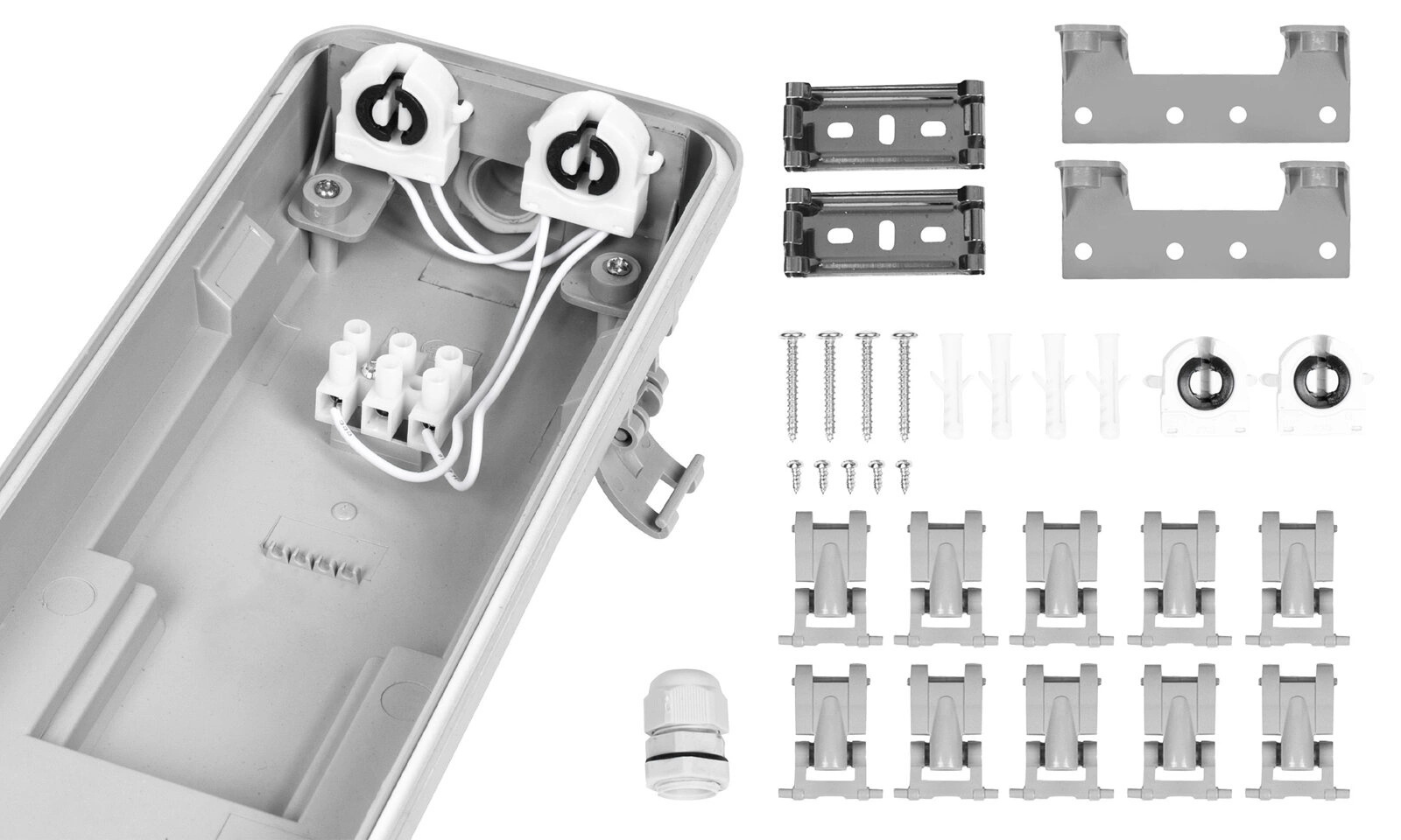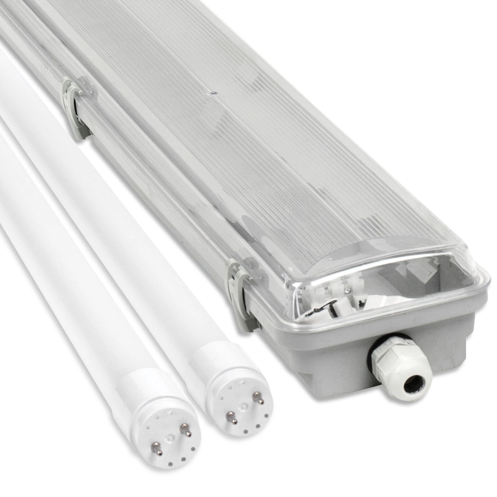 - Tubowe świetlówki LED: Zawiera dwa egzemplarze typu T8, które dostarczają jednolite i mocne światło.