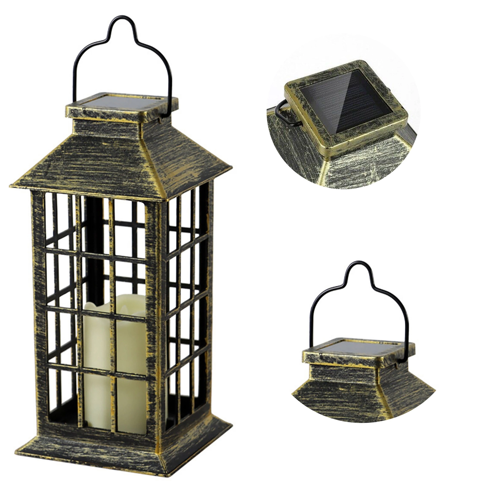 - ✴️Główne cechy produktu: ✅ Lampa solarna zewnętrzna – idealna do ogrodu, tarasu, balkonu czy na schody ✅ Zasilana energią słoneczną – nie wymaga baterii ani kabli ✅ Czujnik zmierzchu – automatyczne włączanie po zmroku ✅ Efekt świecy LED – przytulne, migoczące światło ✅ Styl retro / vintage – klasyczny design z przeszkleniami i metalicznym wykończeniem ✅ Wytrzymałość na warunki atmosferyczne – klasa ochrony IP44 ✅Lampa solarna LED z uchwytem – możliwość zawieszenia np. na gałęzi, płocie lub postawienia na stole.