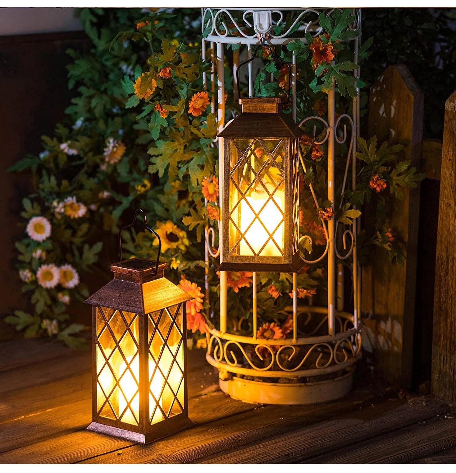 - ✴️2 Lampiony ogrodowe solarne retro – stylowa lampa solarna ogrodowa zewnętrzna LED Wprowadź do swojego ogrodu wyjątkowy klimat dzięki lampie solarnej ogrodowej w stylu retro! Ten dekoracyjny lampion solarny zewnętrzny to połączenie klasyki z nowoczesną technologią — wyposażony w panel solarny, automatyczny czujnik zmierzchu oraz efekt świecy LED imitujący naturalne światło płomienia.