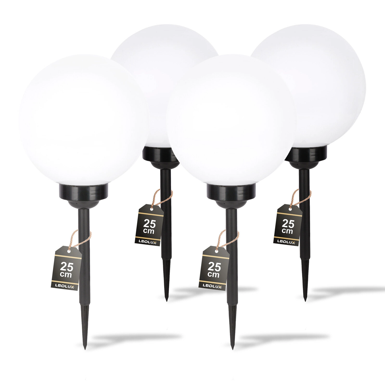 4x Lampa Solarna LED Wbijana Ogrodowa biała kula 25cm LSOL-024 LEDLUX
