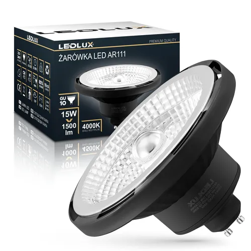 Żarówka LED GU10 ES111 AR111 BLACK 15W = 140W 1150lm 45 stopni 4000K biała neutralna LEDLUX