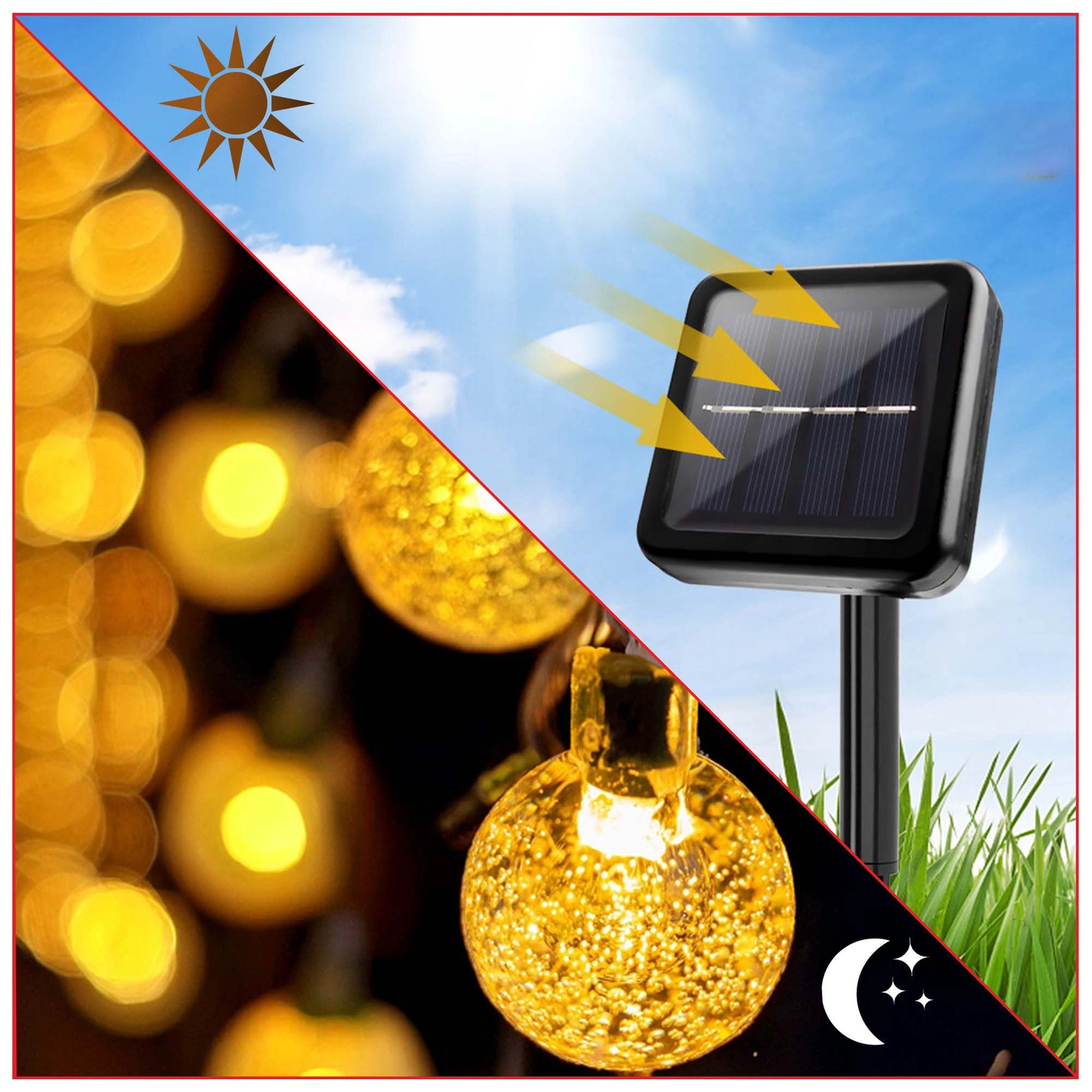 Stwórz bajkowe oświetlenie zasilanie energią słoneczną. Girlanda wykonana jest z solidnych materiałów i jest wodoodporna. Funkcja ta umożliwia nieprzerwaną pracę przez 365 dni, tworząc przyjemną atmosferę na dziedzińcu, trawniku czy namiocie.