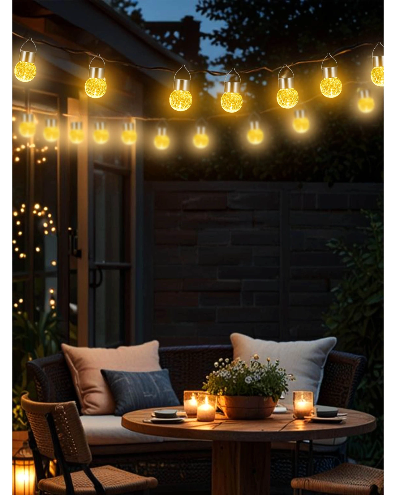 - Zalety Produktu: ✅ Ciepłe, nastrojowe światło – Barwa 3000K tworzy przytulny, relaksujący klimat. ✅ Efekt pękniętego szkła – Tworzy elegancki wzór świetlny na powierzchniach. ✅ Automatyczne włączanie – Czujnik zmierzchu automatycznie uruchamia lampę po zapadnięciu zmroku. ✅ Energooszczędność– Zasilanie solarne eliminuje konieczność używania prądu. ✅ Odporność na warunki atmosferyczne – Klasa IP44 zapewnia ochronę przed wilgocią i deszczem. ✅ Łatwy montaż – Dzięki uchwytowi i klipsowi, lampę można zawiesić lub postawić w dowolnym miejscu. ✅ Długi czas działania – Po pełnym naładowaniu lampa świeci nawet przez 8 godzin.