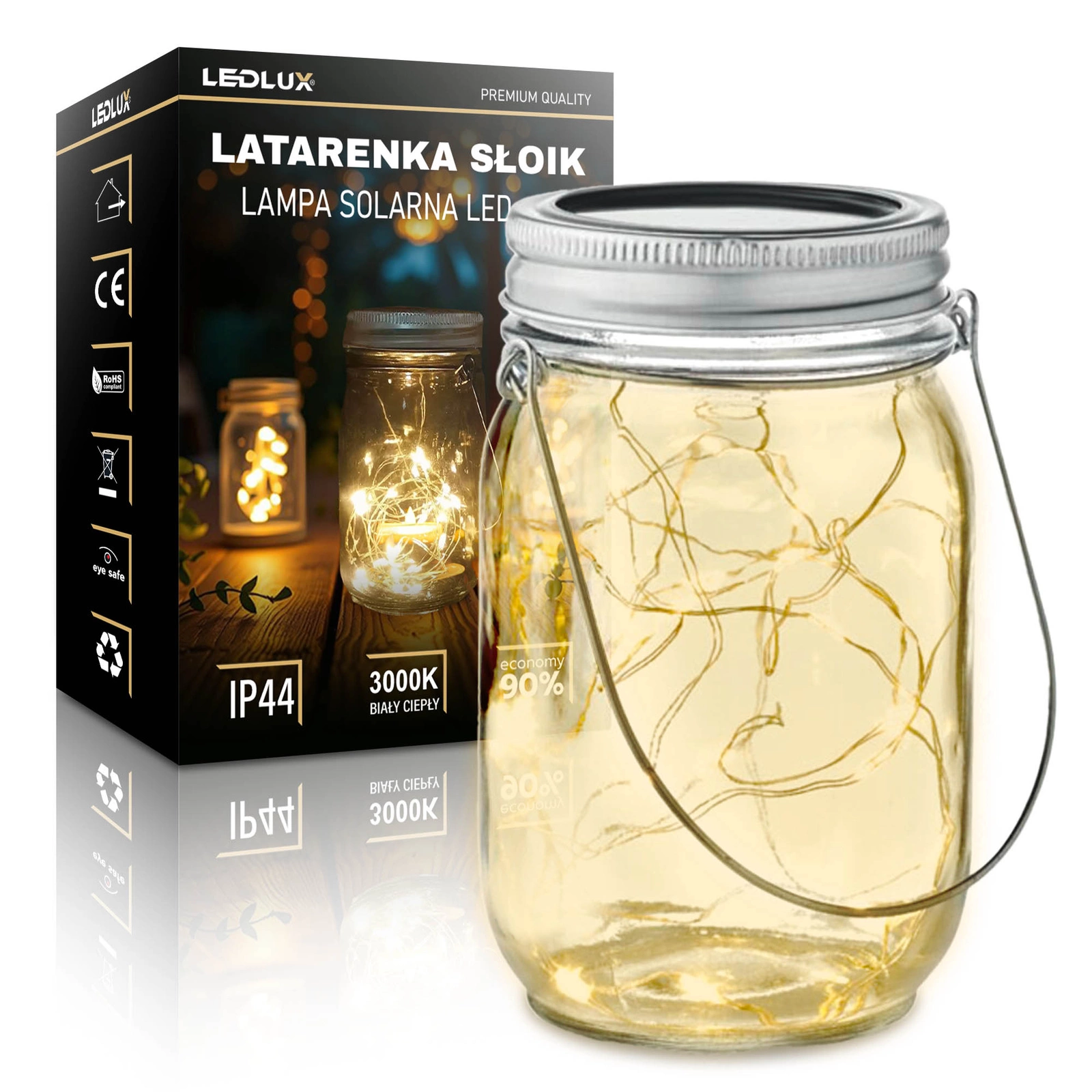 - ✴️ Szklana Lampa Solarna LED w Słoiku – Dekoracyjna Lampa Ogrodowa z Ciepłym Światłem 3000K | LEDLUX LSOL-043 IP44 ✨ Oświetlenie ogrodowe, które tworzy niepowtarzalny klimat! - Idealna jako lampa solarna ogrodowa - Świetna dekoracja na balkon, taras, do altany czy przydomowego patio - Sprawdzi się także jako lampka stołowa lub element romantycznej kolacji na zewnątrz - Idealna do aranżacji typu boho, rustykalnej oraz nowoczesnej