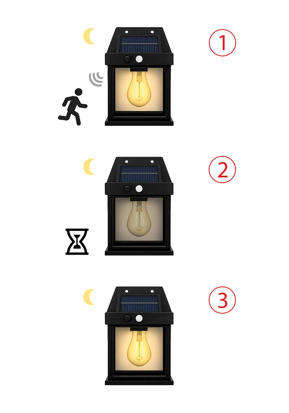 - ☀️ Trzy tryby świecenia – dopasuj działanie lampy do swoich potrzeb! 1️⃣ Tryb czujnika ruchu – lampa włącza się tylko wtedy, gdy wykryje ruch, i świeci przez 30 sekund. Idealne rozwiązanie do oszczędzania energii. 2️⃣ Tryb zmierzchowy z detekcją ruchu – lampa świeci delikatnym światłem (30%), a po wykryciu ruchu rozjaśnia się do pełnej mocy na 30 sekund. 3️⃣ Tryb stały – lampa działa całą noc z 50% jasności, niezależnie od ruchu, zapewniając stałe oświetlenie po zmroku. ☀️ Dzięki zasilaniu energią słoneczną i automatycznej pracy po zmroku, to funkcjonalne oświetlenie idealnie sprawdzi się przy drzwiach, w ogrodzie czy na tarasie.