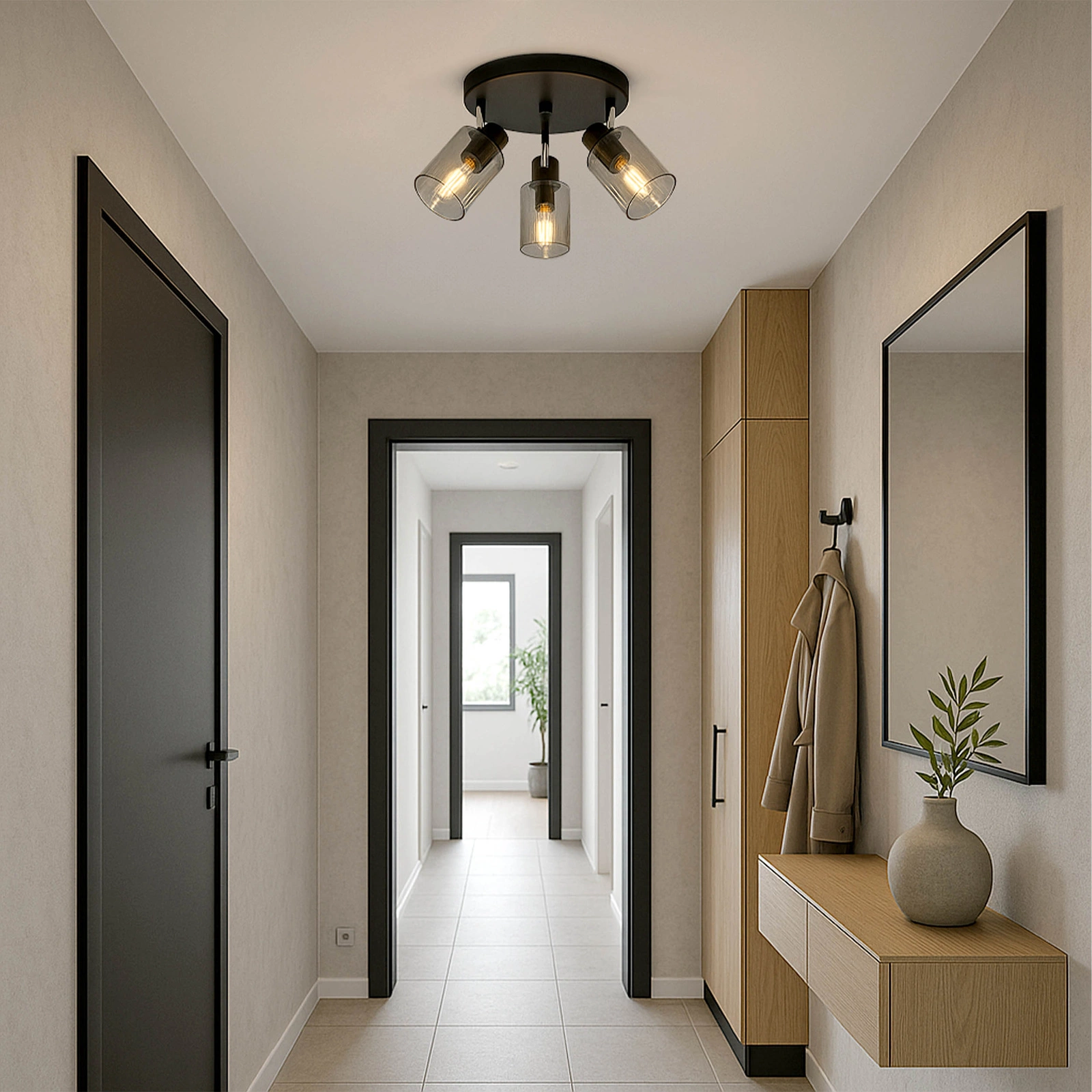 - Dlaczego warto ją mieć? ✅ 3 punkty świetlne (E27) – równomierne i kierunkowe doświetlenie pomieszczenia ✅ Regulowane klosze – oświetlenie dokładnie tam, gdzie go potrzebujesz ✅ Szklane klosze grafitowe z metalicznym połyskiem – elegancja i lekkość w jednym ✅ Stylowa forma – połączenie czarnego matu oraz szkła i chromowanych detali ✅ Kompaktowa wysokość (max 20 cm) – świetna nawet do mieszkań z niższym sufitem ✅ Łatwy i szybki montaż – idealna do samodzielnej instalacji