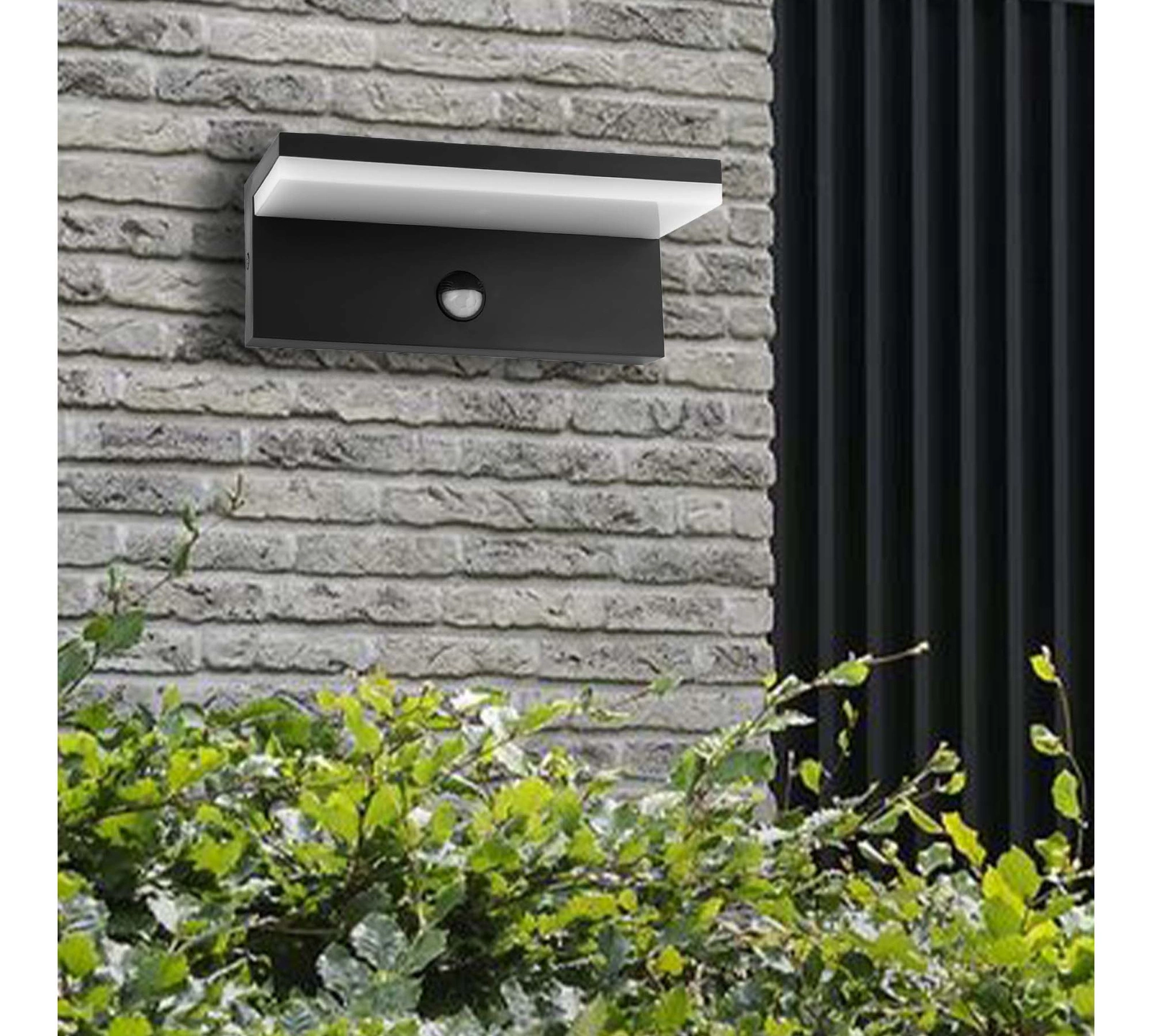 Lampa elewacyjna LED zewnętrzna kinkiet ogrodowy 10W biała neutralna PIR LEL-0002 PIR CZARNA LEDLUX