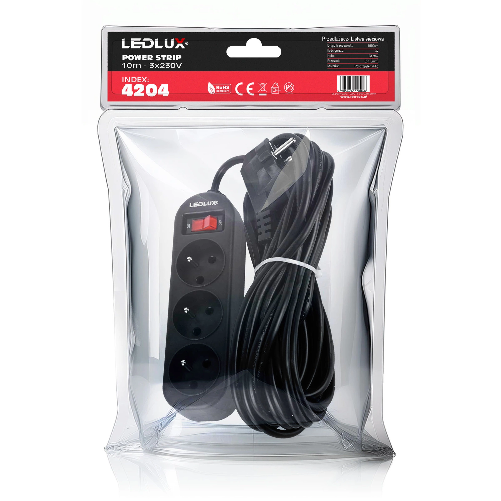 PRZEDŁUŻACZ listwa zasilająca 10m 3 gniazda LEDLUX