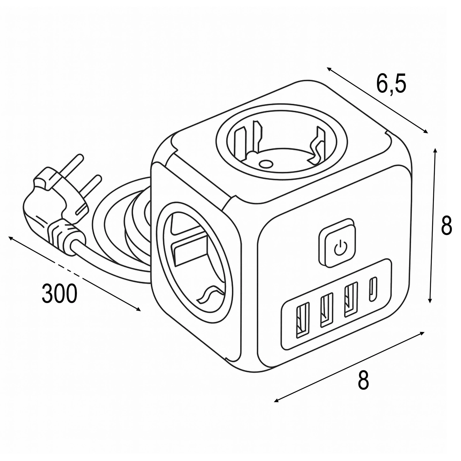 Kompaktowa kostka LEDLUX łączy 3 gniazda 230V z 4 portami USB. Kabel 3 m zapewnia swobodę ustawienia, a przycisk ON/OFF pozwala w sekundę odciąć zasilanie.