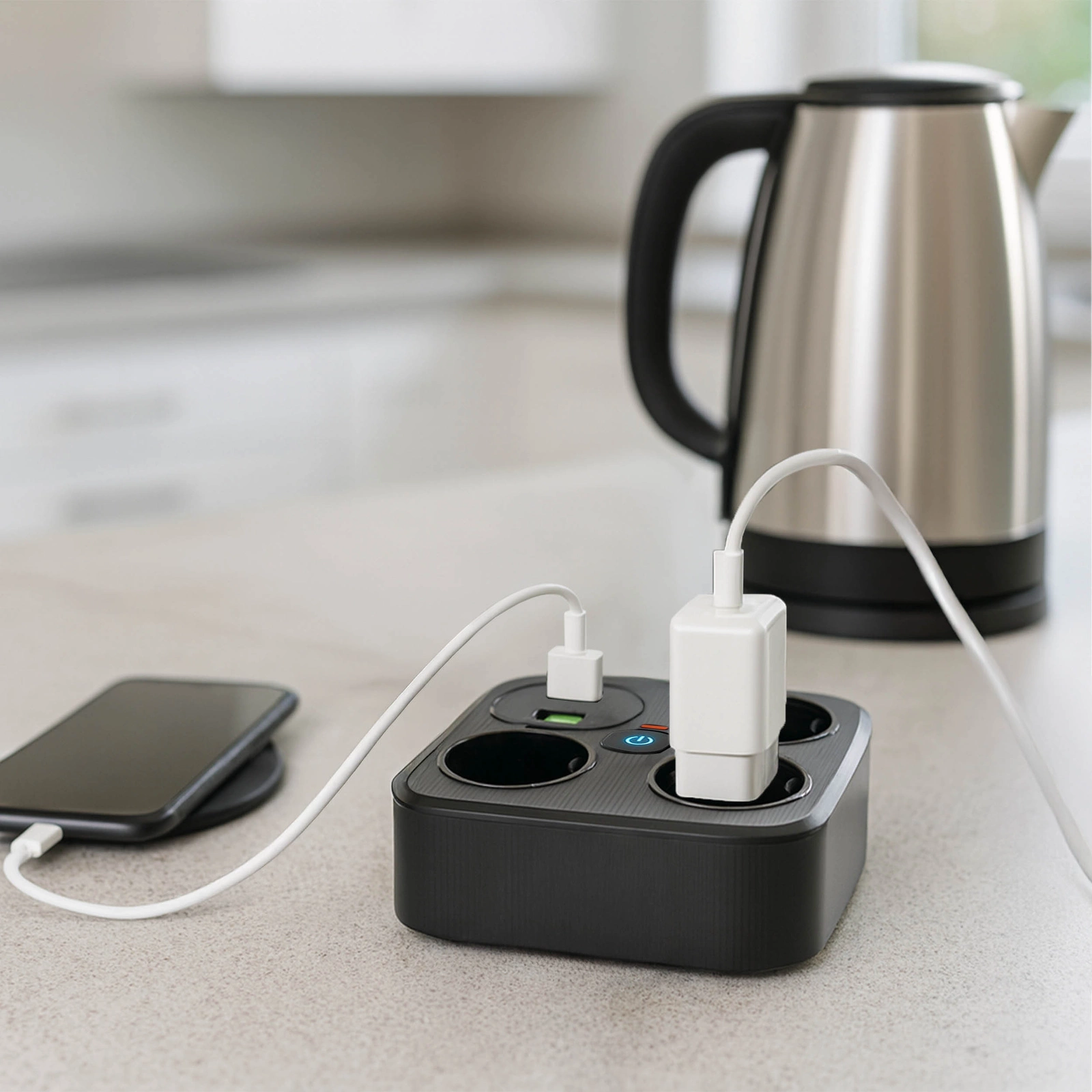 ▪️ 3× 230V + USB-C/USB-A – zasilanie i ładowanie w jednym