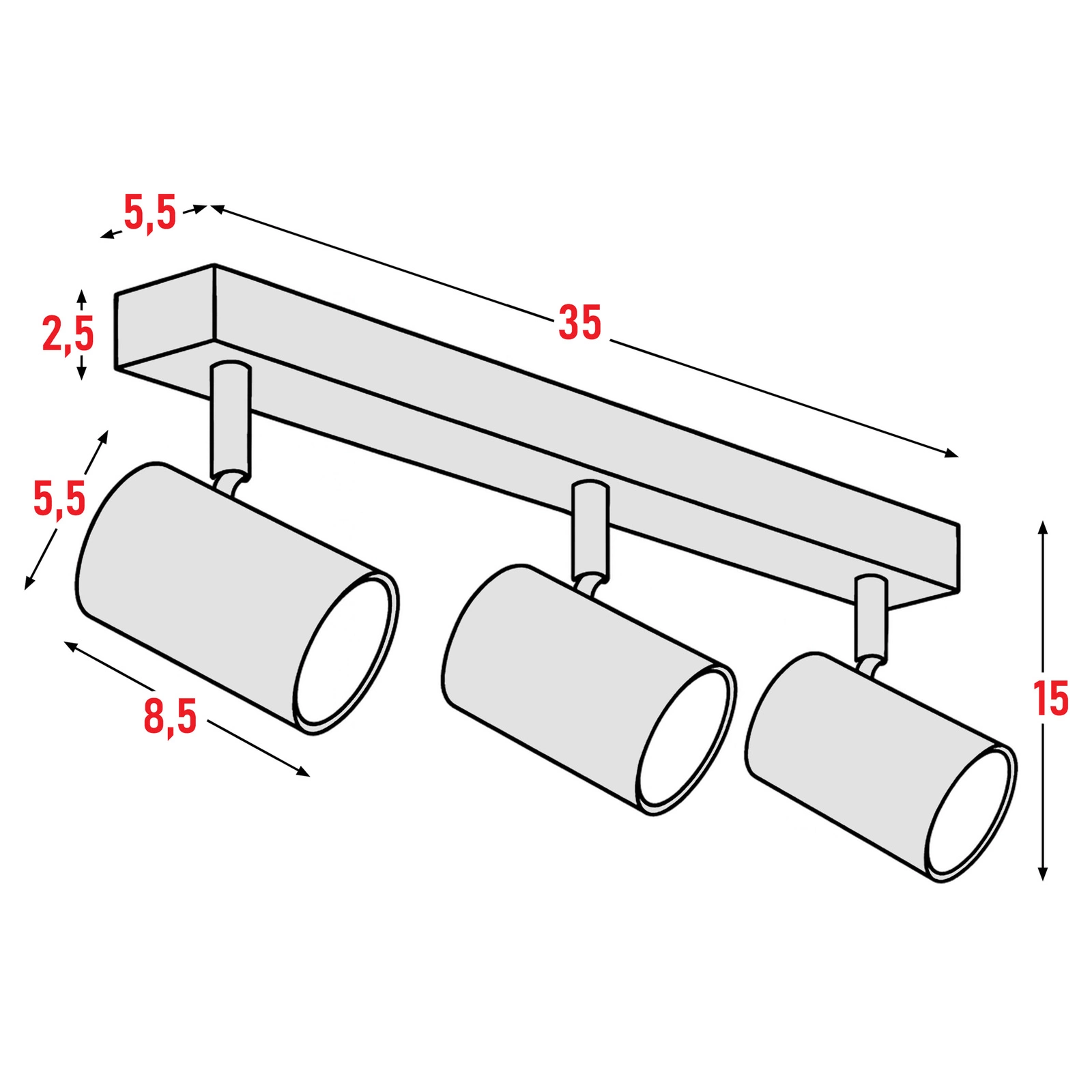 Oprawa ma 3 ruchome tuby z gniazdem GU10. Żarówki nie są dołączone.