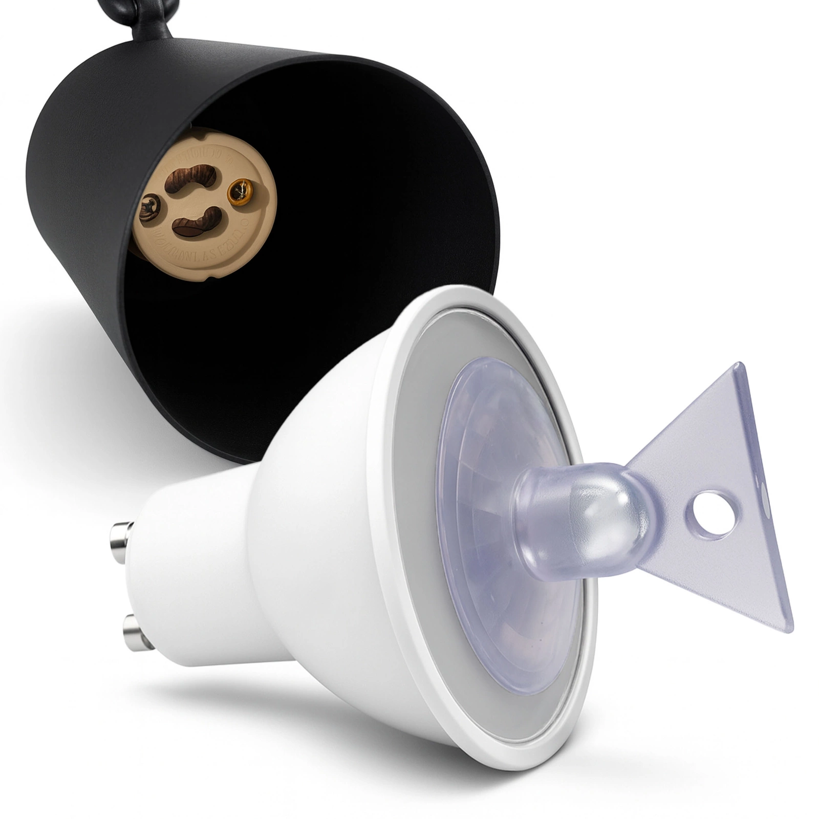 Wsuń trzonek GU10, dociśnij i przekręć o ~¼ obrotu w prawo. Zawsze montuj przy odłączonym zasilaniu.