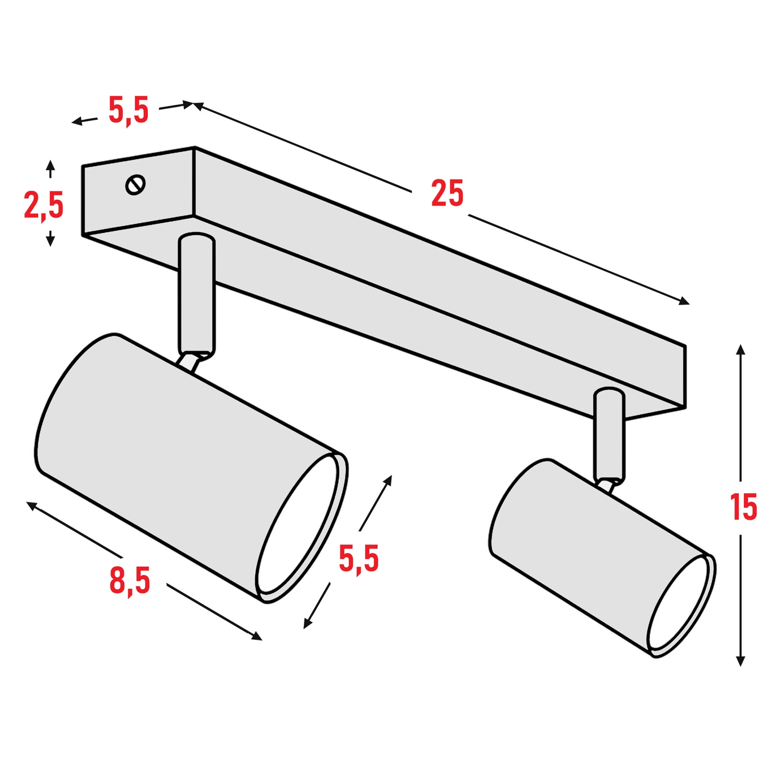 Listwa 2×GU10, akcesoria montażowe, instrukcja (bez żarówek).