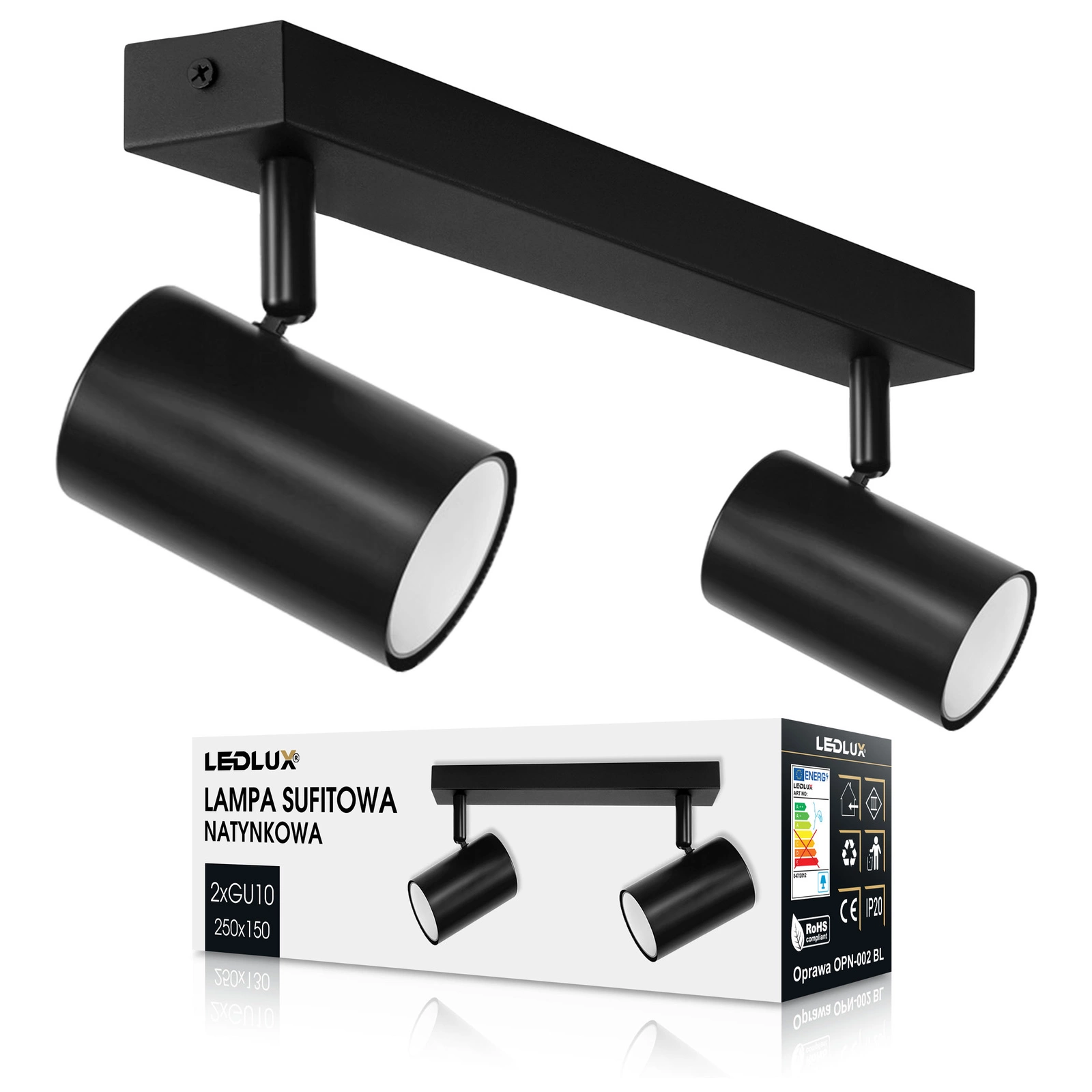 Nowoczesna listwa LEDLUX 2×GU10 w czarnym macie to pewny sposób na precyzyjne doświetlenie blatu, korytarza lub wnęki. Dwie ruchome tuby ustawisz w sekundę, a wymienne żarówki GU10 pozwolą dobrać barwę i moc światła do Twoich potrzeb.